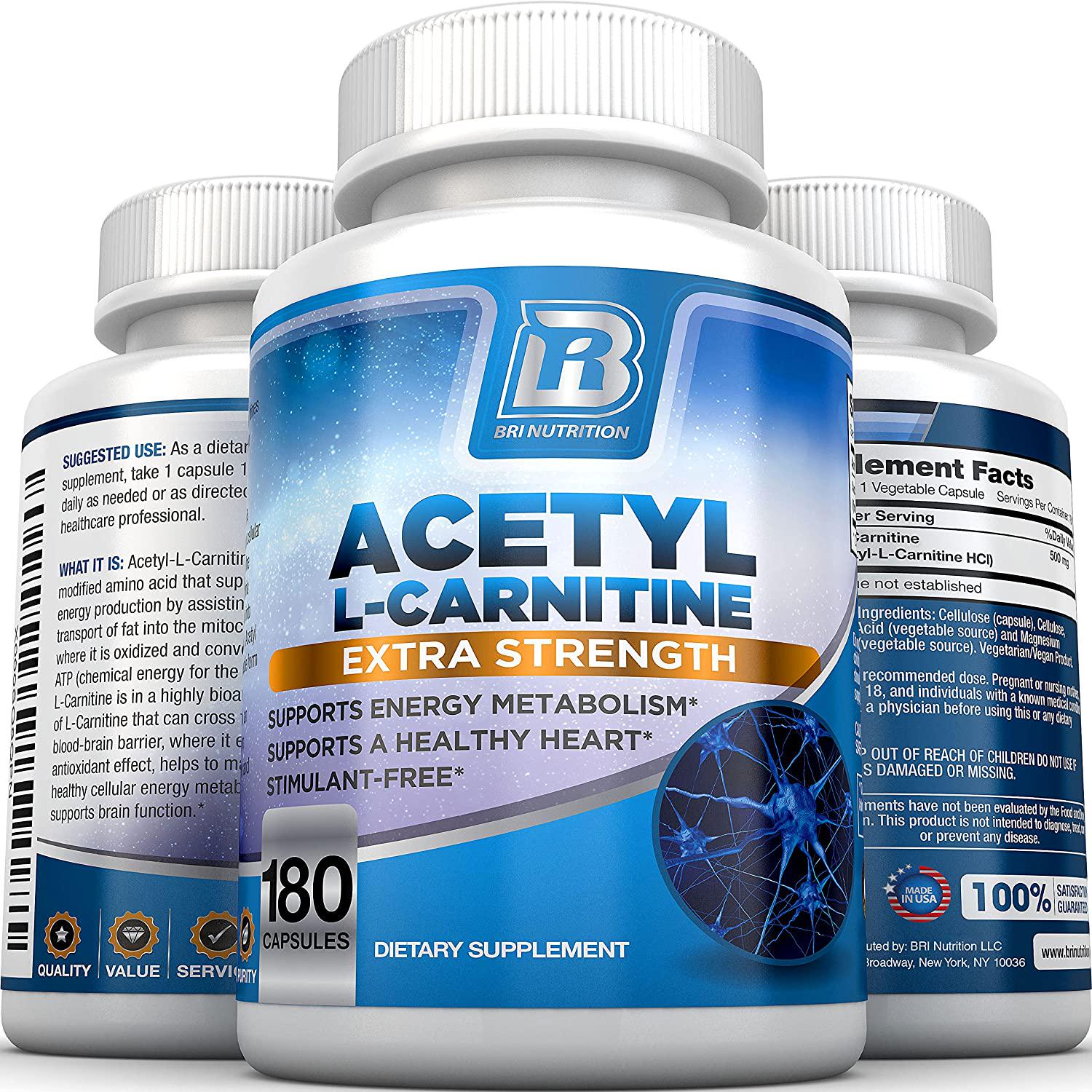 BRI Nutrition Acetyl L-Carnitine - Natural Supplement to Help Boost Energy Production, Support Memory/Focus, Promote Positive Mood - 500mg 180 Vegetable Cellulose Capsules