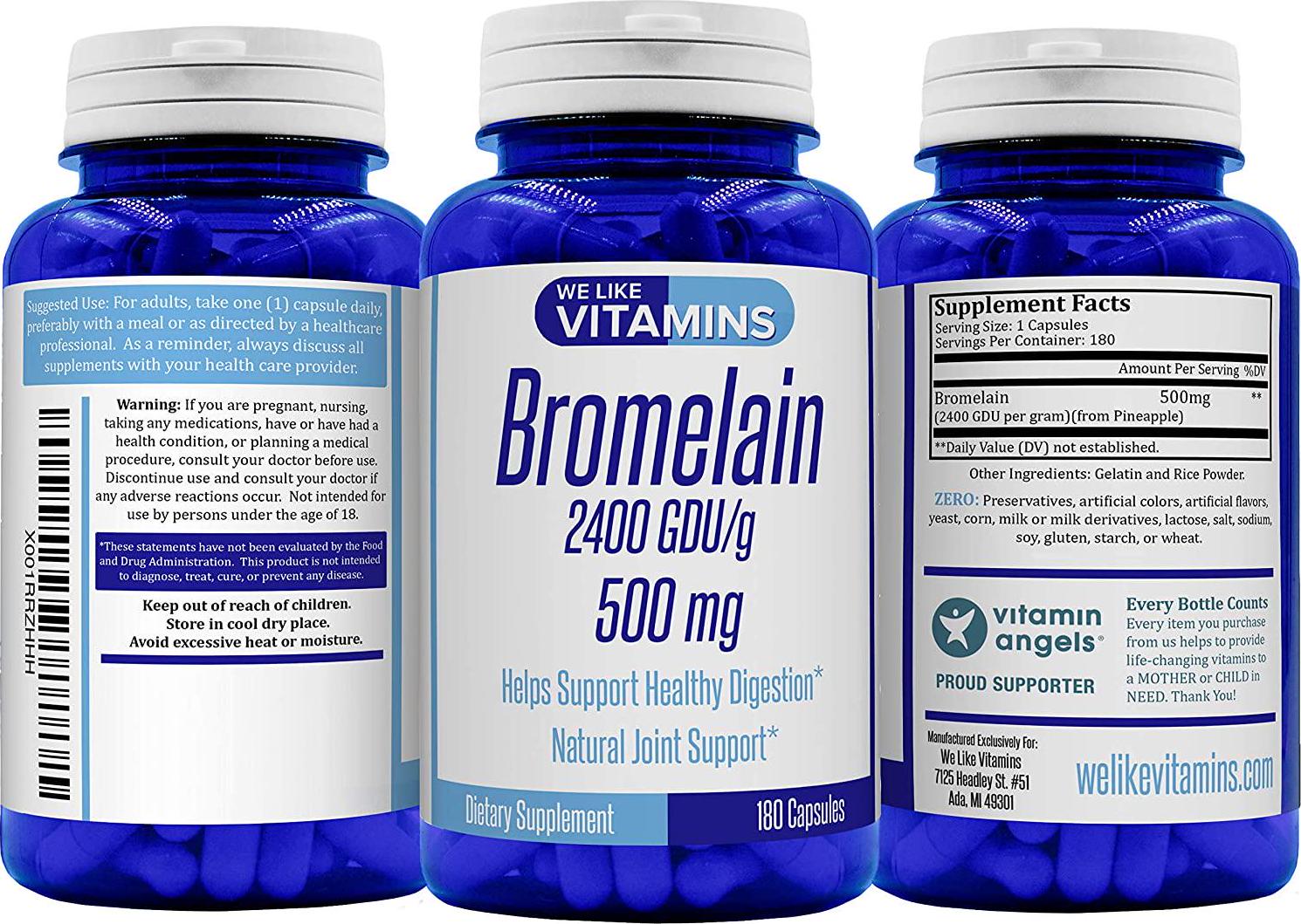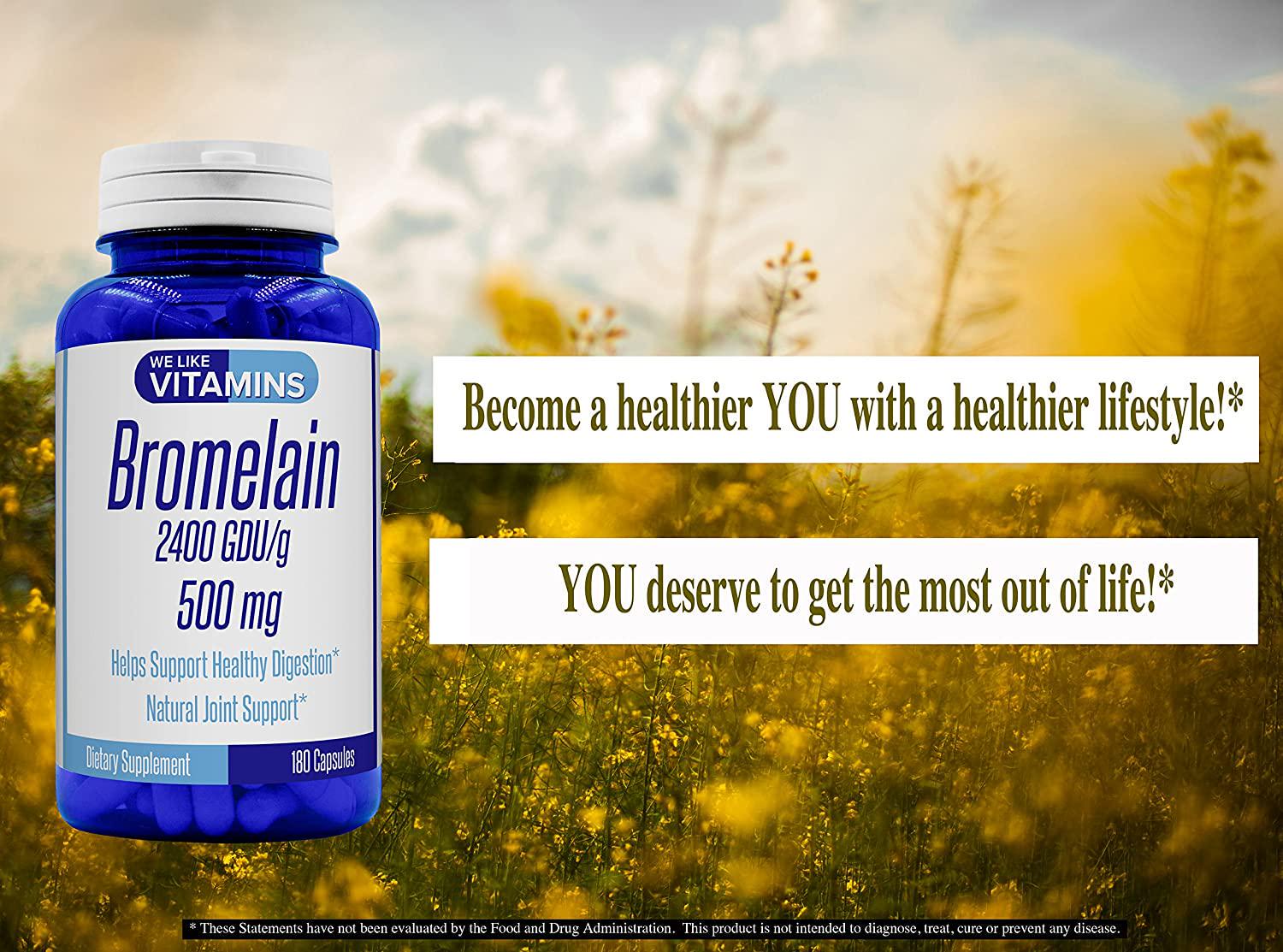 - HIGH QUALITY BROMELAIN - Our Bromelain supplement is free of preservatives and artificial ingredients. All of our products are encapsulated and bottled in the USA with ingredients sourced from around the world. Using Bromelain Capsules from We Like Vitamins is a great start to a healthier lifestyle. *