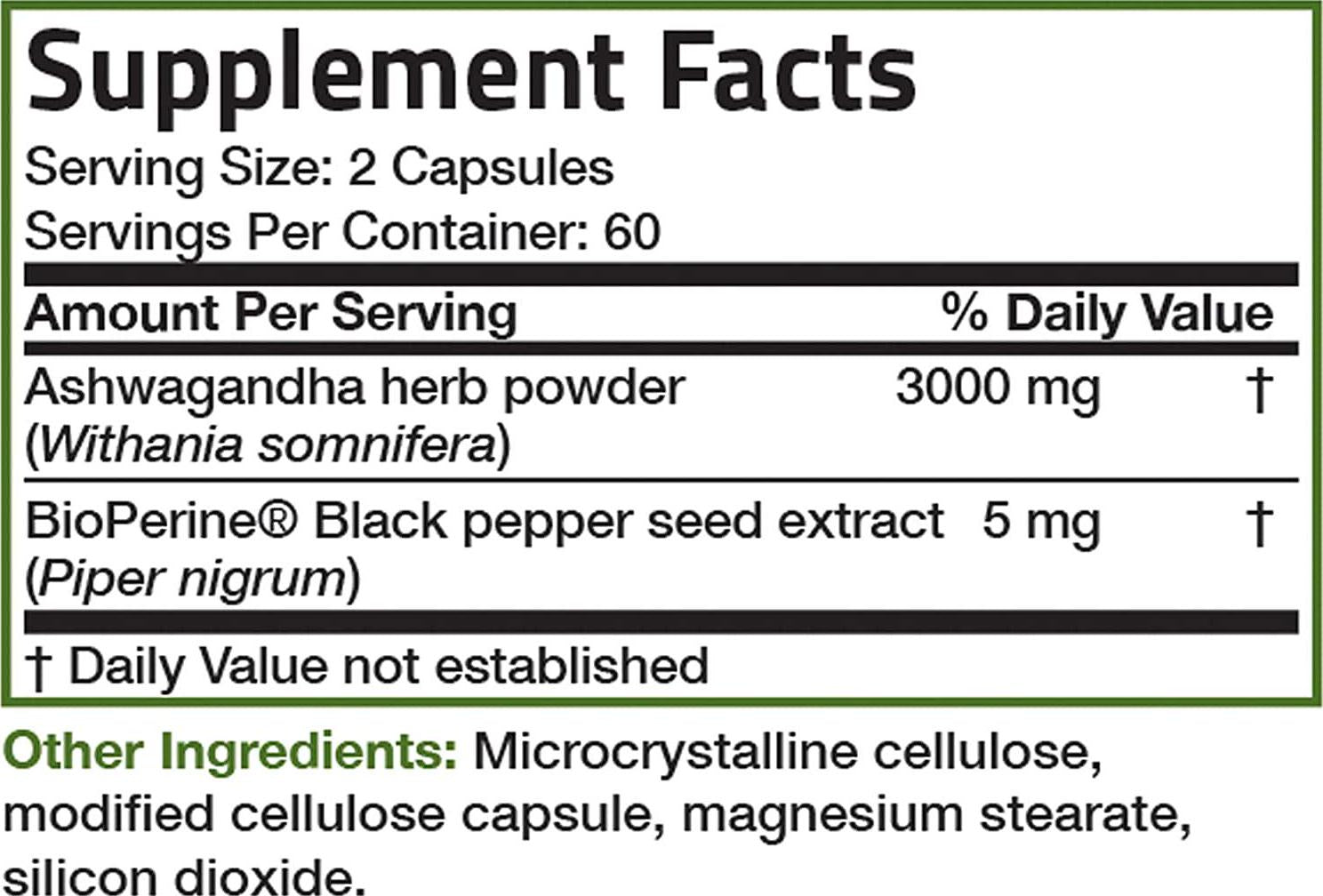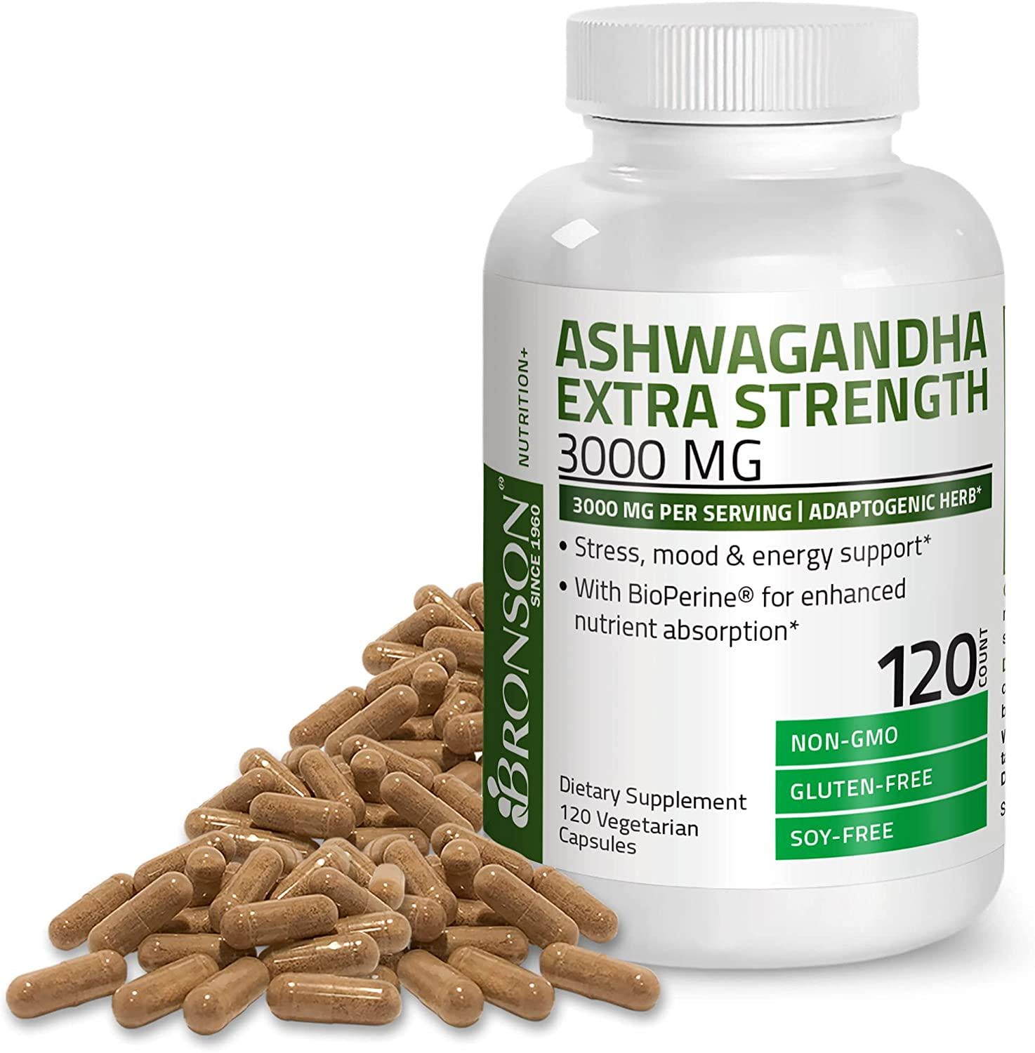 - Herbal Stress Support: Ashwagandha Extra Strength 3000 MG helps to support a healthy stress response, maintain healthy cortisol levels, support a positive mood, and memory.* Bronson’s Ashwagandha additionally includes BioPerine, which has been clinically shown to enhance nutrient absorption.*