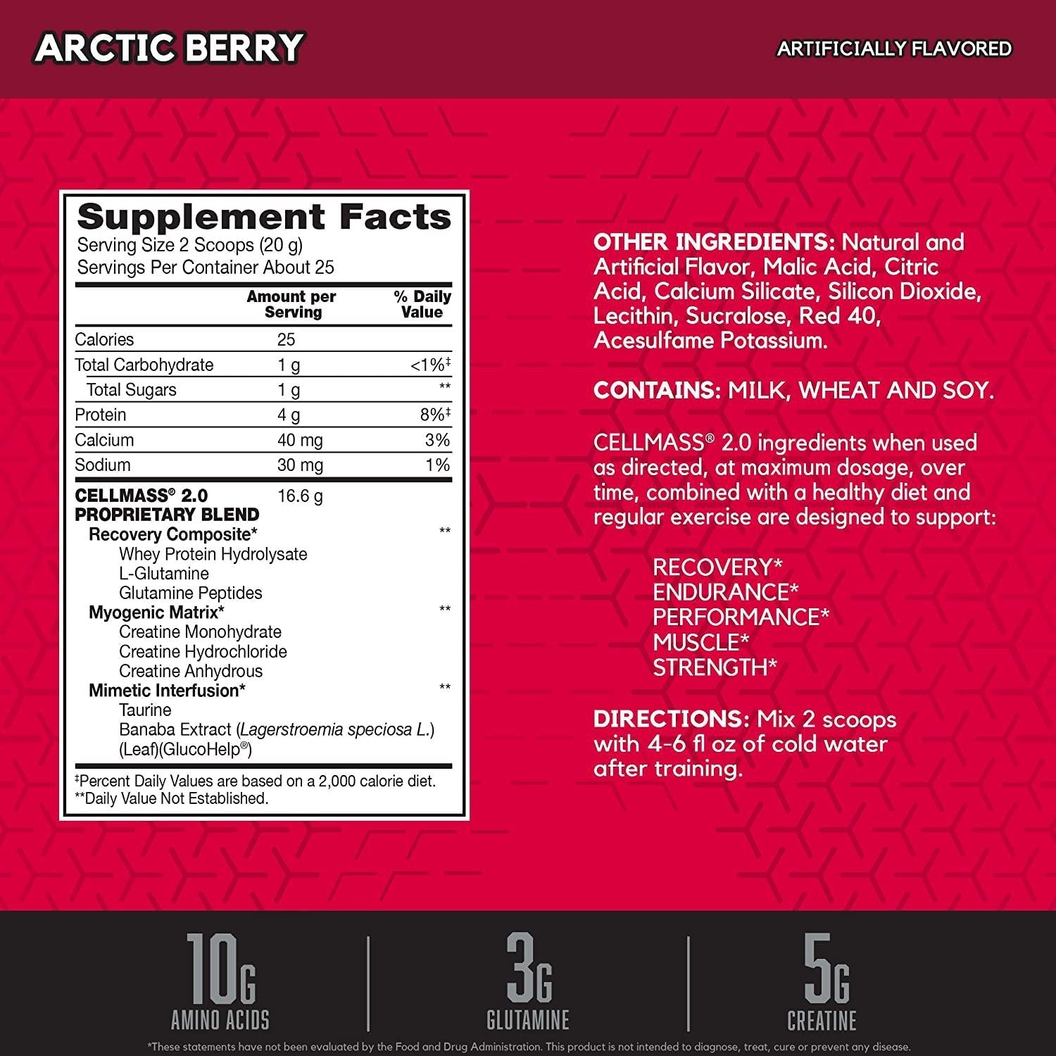 arctic berry, bsn cellmass 2.0, creatine, glutamine, post-workout, recovery powder