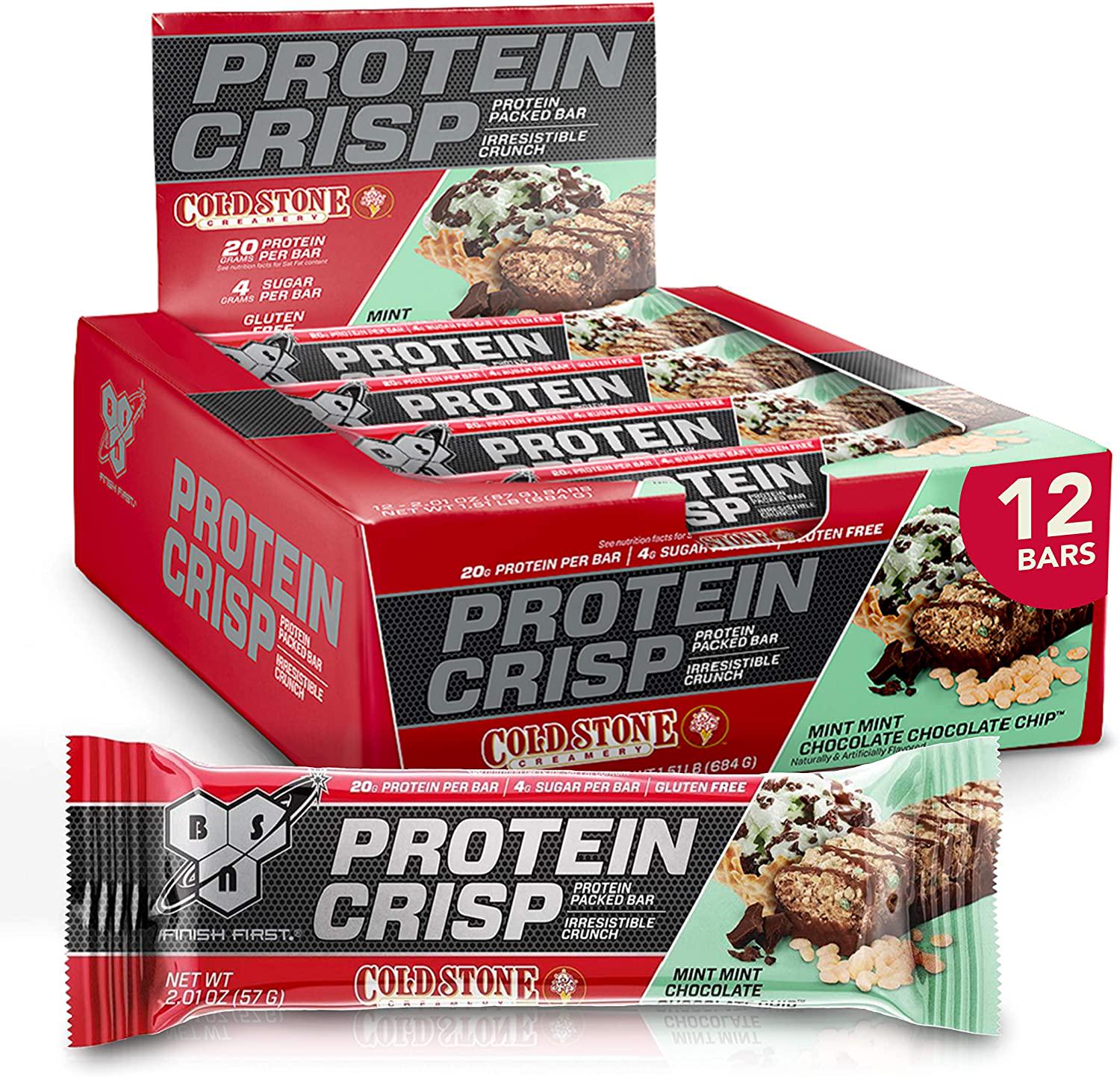BSN Protein Bars - Protein Crisp Bar by Syntha-6, Whey Protein, 20g of Protein, Gluten Free, Low Sugar, Cold Stone Creamery Mint Mint Chocolate Chip, 12 Count