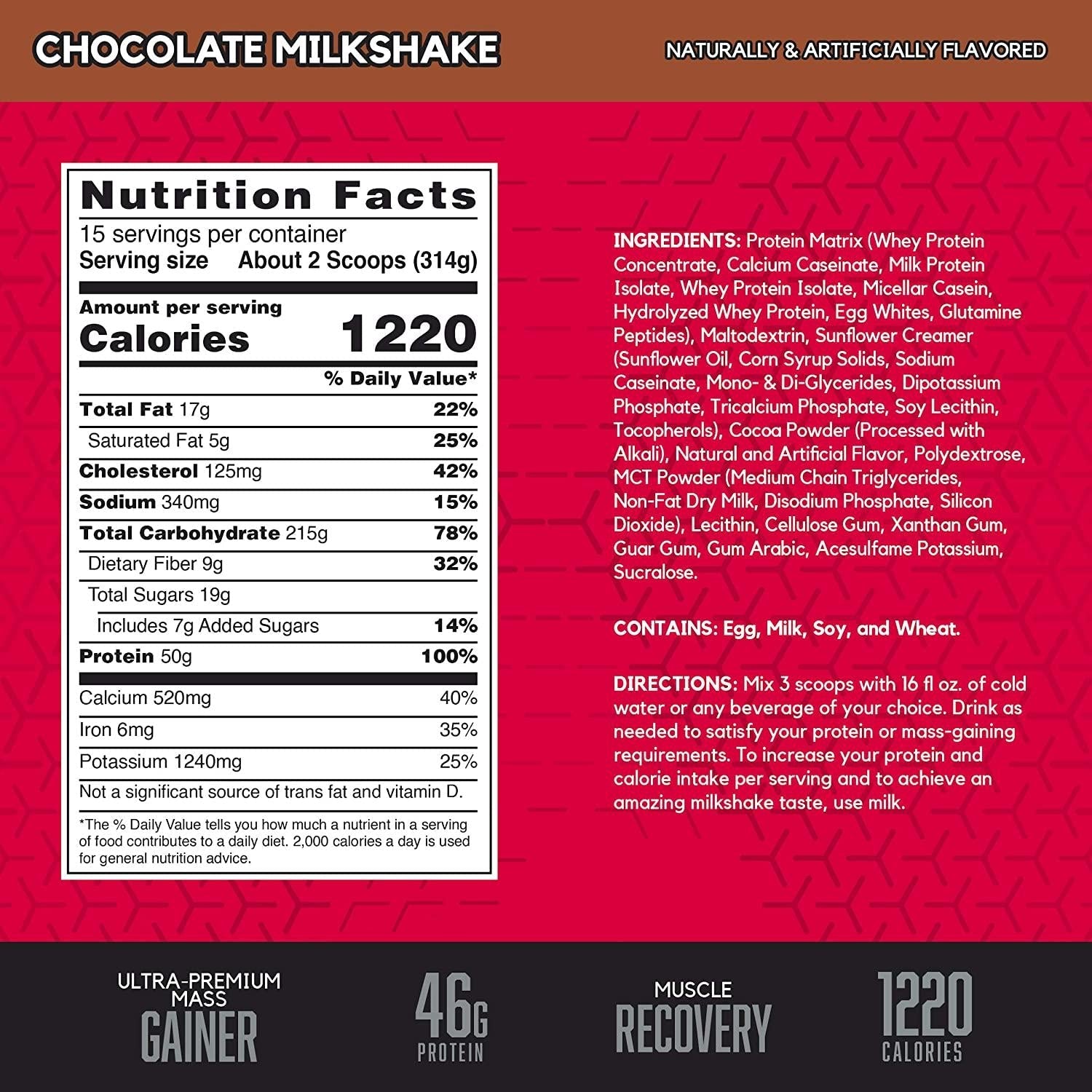 - Recommended Use- Mix 3 scoops with 16 oz. of cold water or any beverage of your choice. Vary the amount of liquid to achieve your desired consistency. Drink 1 serving daily, or as needed to satisfy your protein or mass-gaining requirements. To increase your protein and calorie intake per serving and to achieve an amazing milkshake taste, use milk