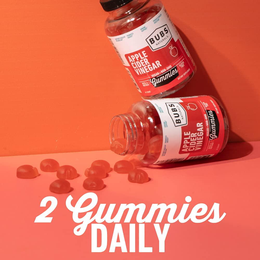 BUBS Naturals Apple Cider Vinegar Gummies - With the Mother - All Natural Vegan ACV Gummy Vitamins - Supports Detox, Digestion - Promotes Energy, Boosts Metabolism, B Vitamins - 60 Count