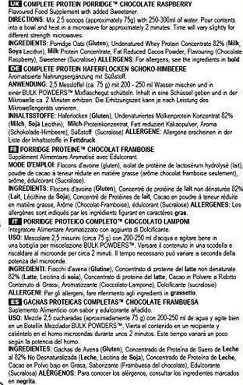 Bulk Protein Porridge Mix, Chocolate Raspberry, 1 kg, Packaging May Vary