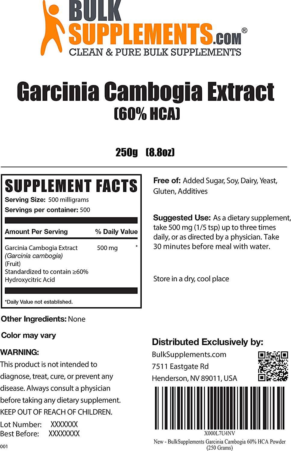 BulkSupplements Garcinia Cambogia 60% HCA Powder (250 Grams)