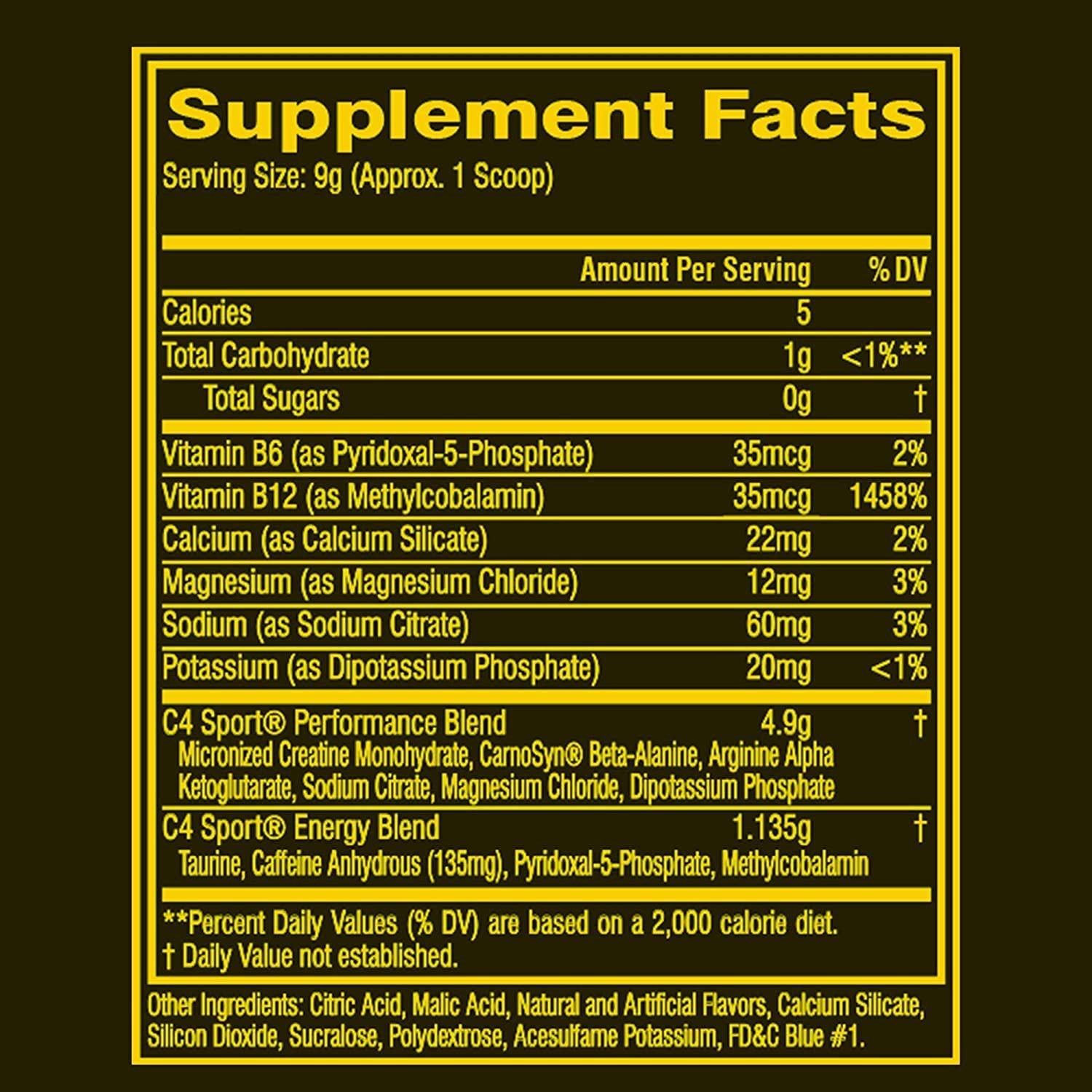 - C4 PRE WORKOUT POWDER FOR MEN & WOMEN - America's Number 1 Selling Pre-Workout Brand has been trusted since 2011 with over 2 billion servings sold* Optimized for exercise to beat your personal best and crush your goals