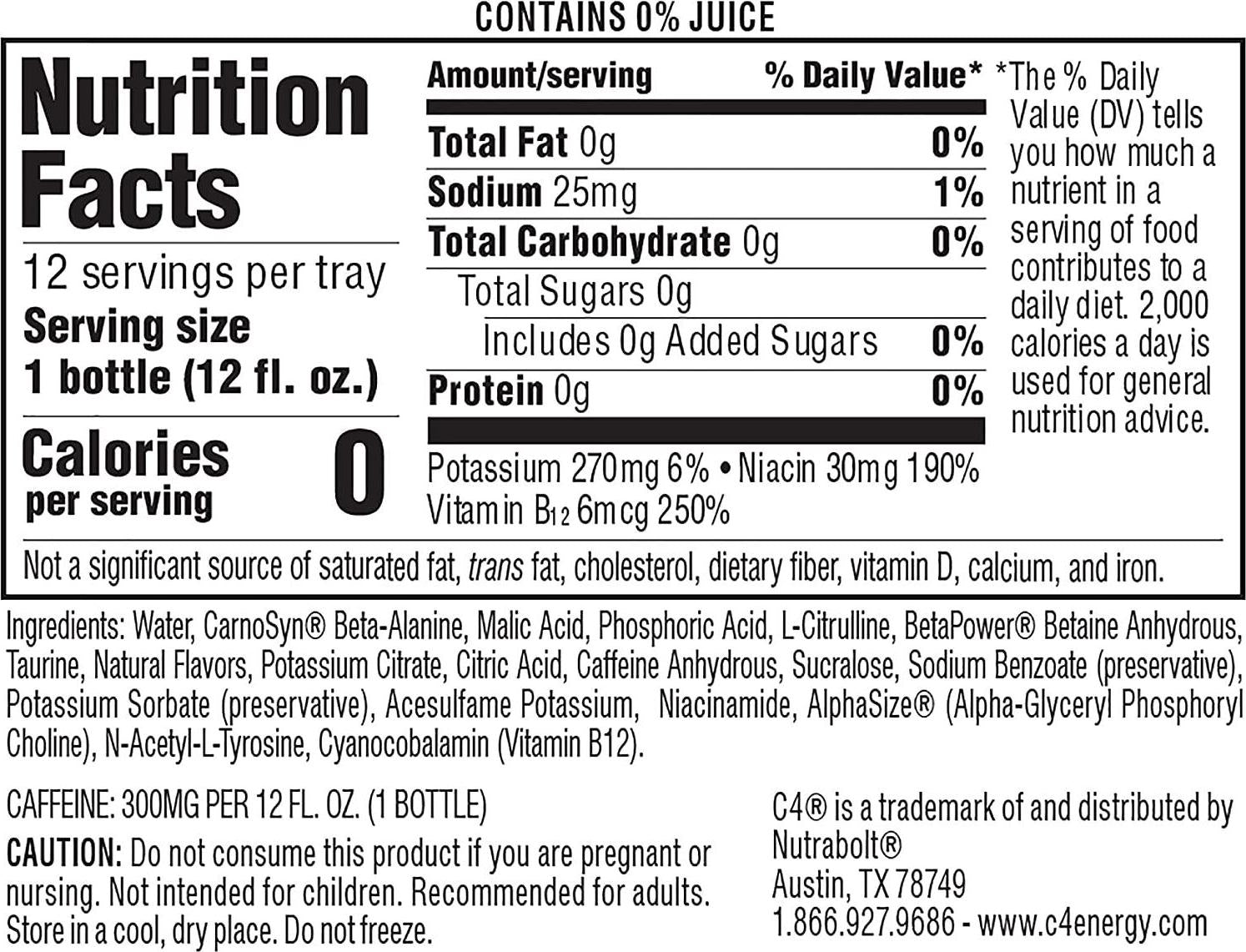 C4 Ultimate Non-Carbonated Zero Sugar Energy Drink, Pre Workout Drink + Beta Alanine, 12 Fl Oz (Pack of 12)