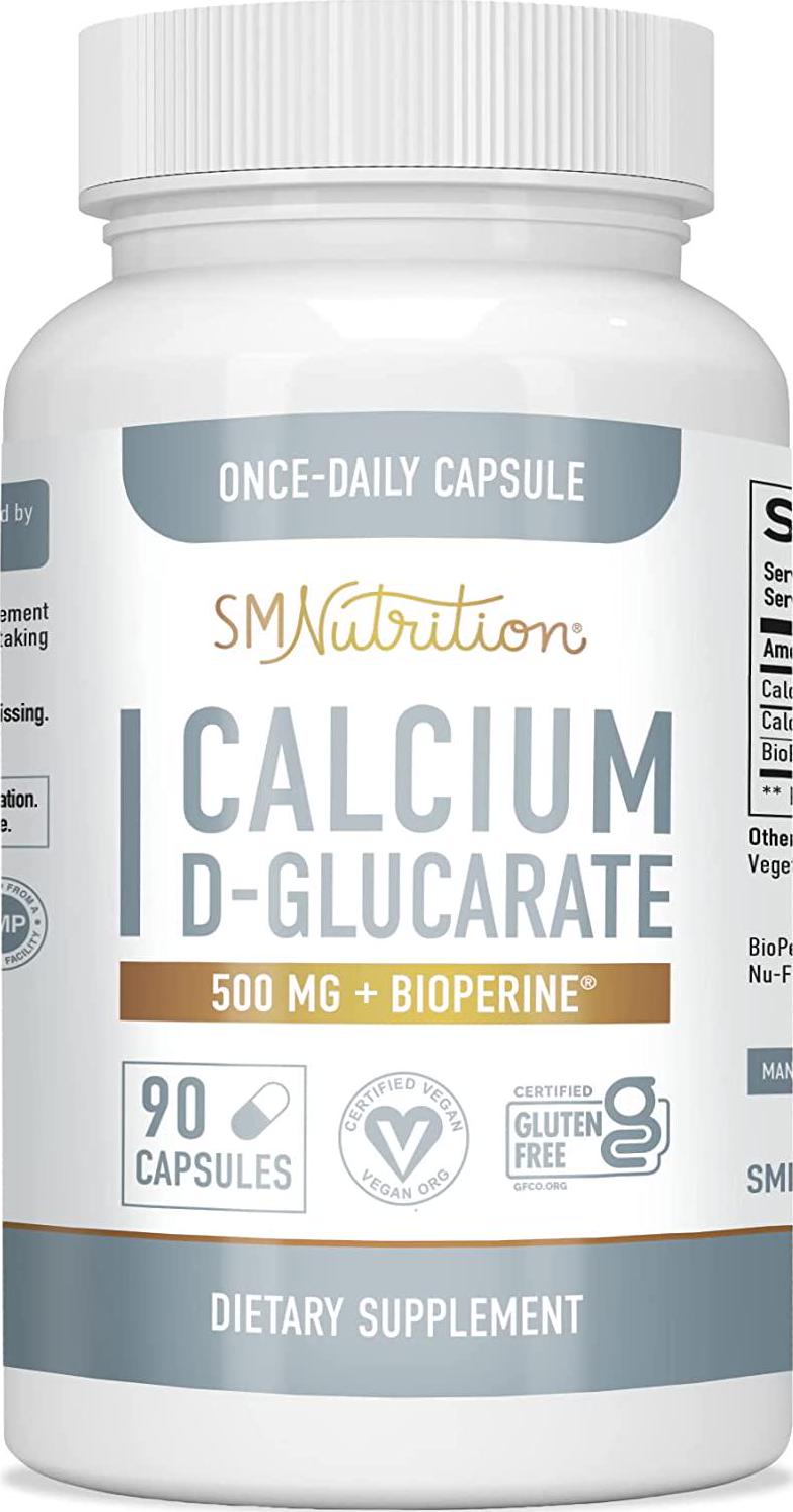 Calcium D Glucarate 500mg 90 Veggie Capsules (3-Month Supply) CDG for Liver Detox and Cleanse, Metabolism, Hormone Balance, Menopause Support.* Vegan.org Certified, Non-GMO, Gluten-Free - SM Nutrition