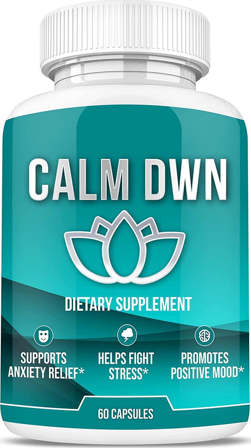 CalmDwn Supplement | Natural Stress and Anti Anxiety Support | Positive Mood Boost Calming Mind and Nervous System | Non GMO w/Lemon Balm, L-Theanine, 5-HTP, Passionflower, Skullcap, Vitamin B6 (60 ct)