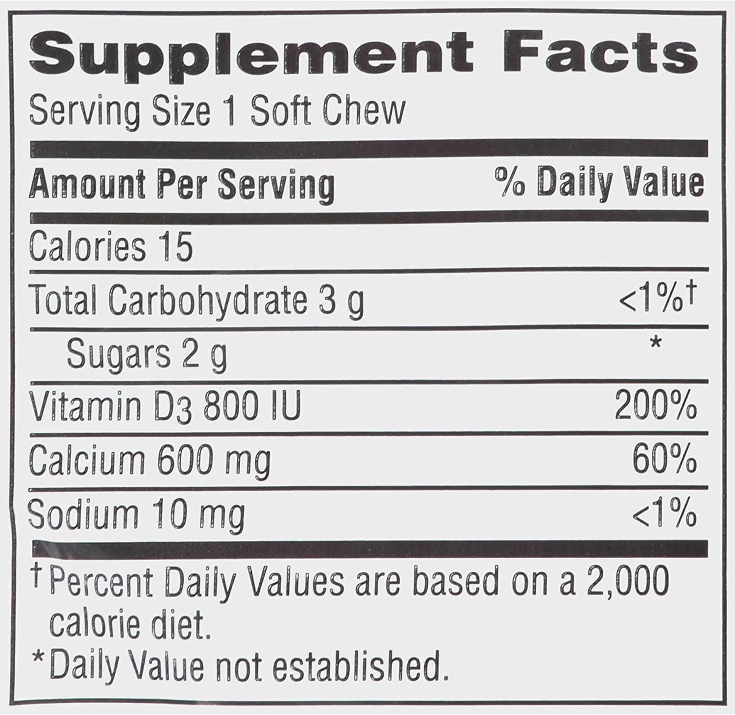 - Caltrate 600+D3 Soft Chews have 800 IU of vitamin D3 to help maximize calcium absorption. (1)