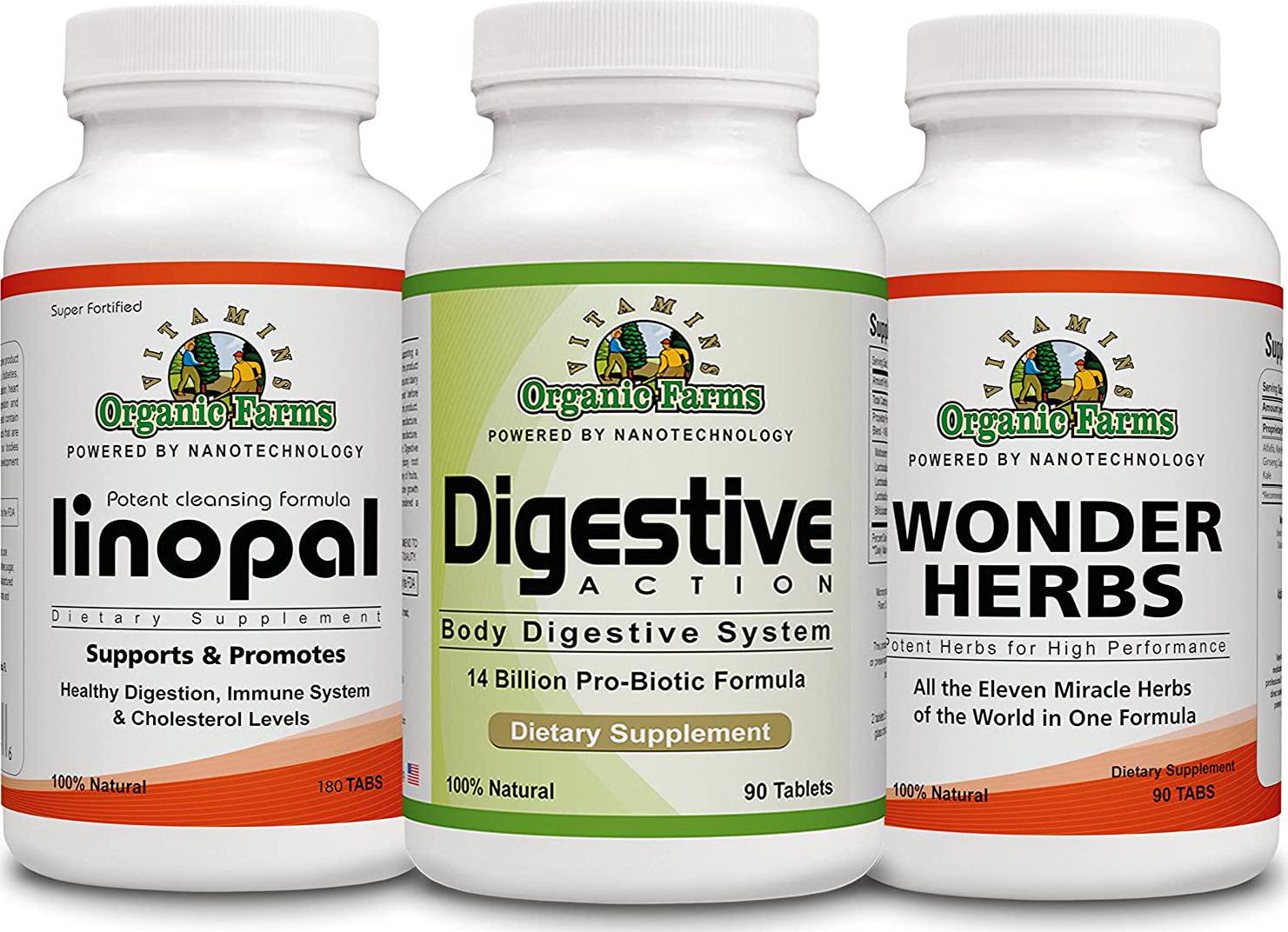 Candida Kit - Linopal 180 Tablets + Wonder Herbs 90 Tablets + Digestive Action 90 Tablets - 100% Natural Dietary Supplements
