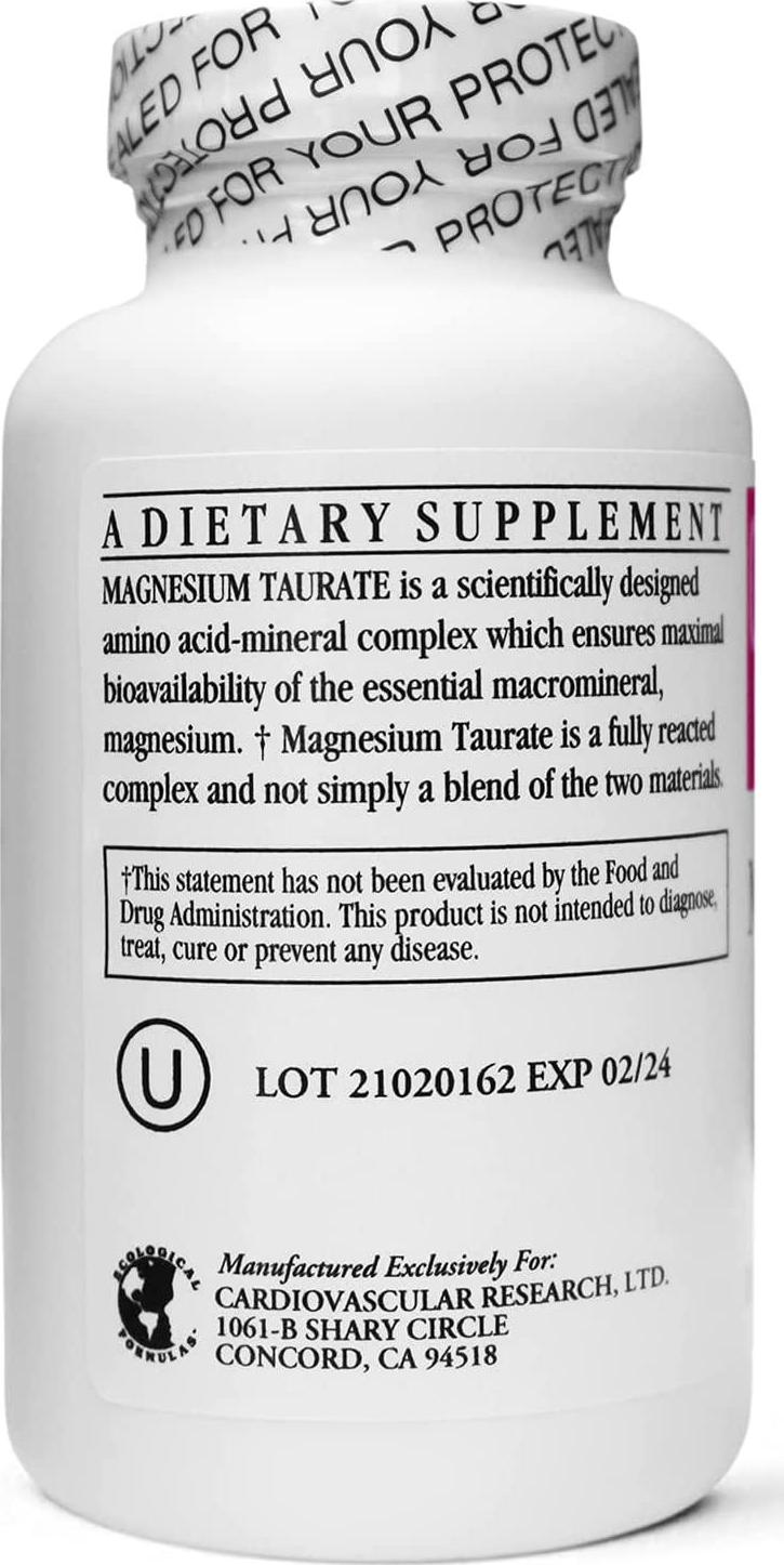 125mg, 180 capsules, cardiovascular health, cardiovascular research, corn free, magnesium taurate, usa