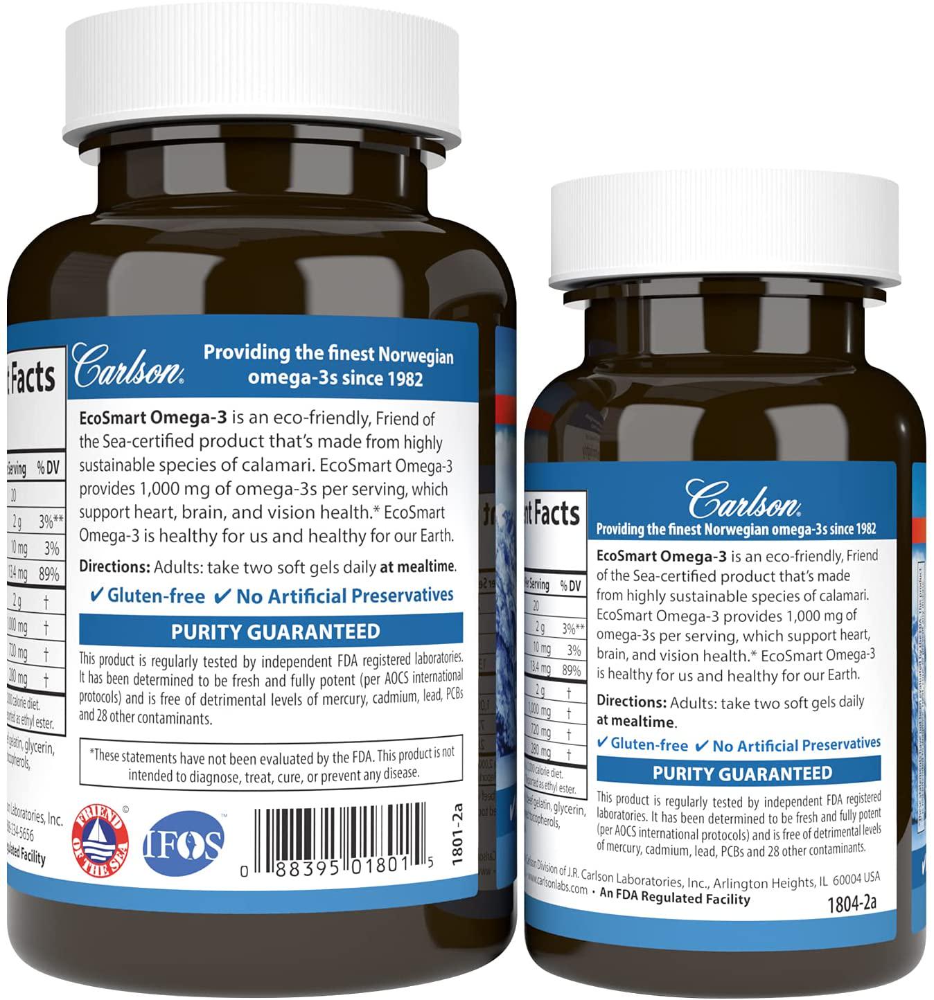 brain function, carlson, ecosmart omega-3, heart health, sustainable source, usa, vision support