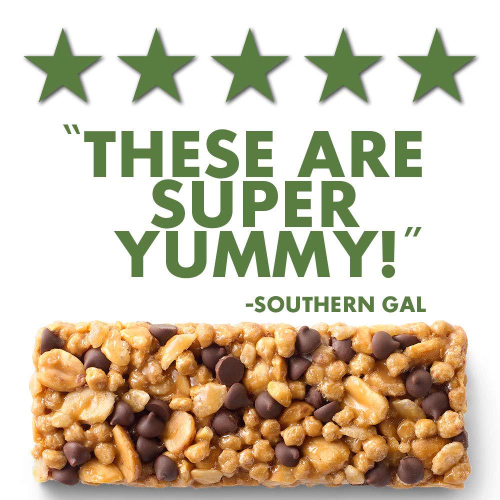 - PEANUT BUTTER GRANOLA BAR: Made with organic peanut butter and sweet chocolate chips for a tasty snack any time of day