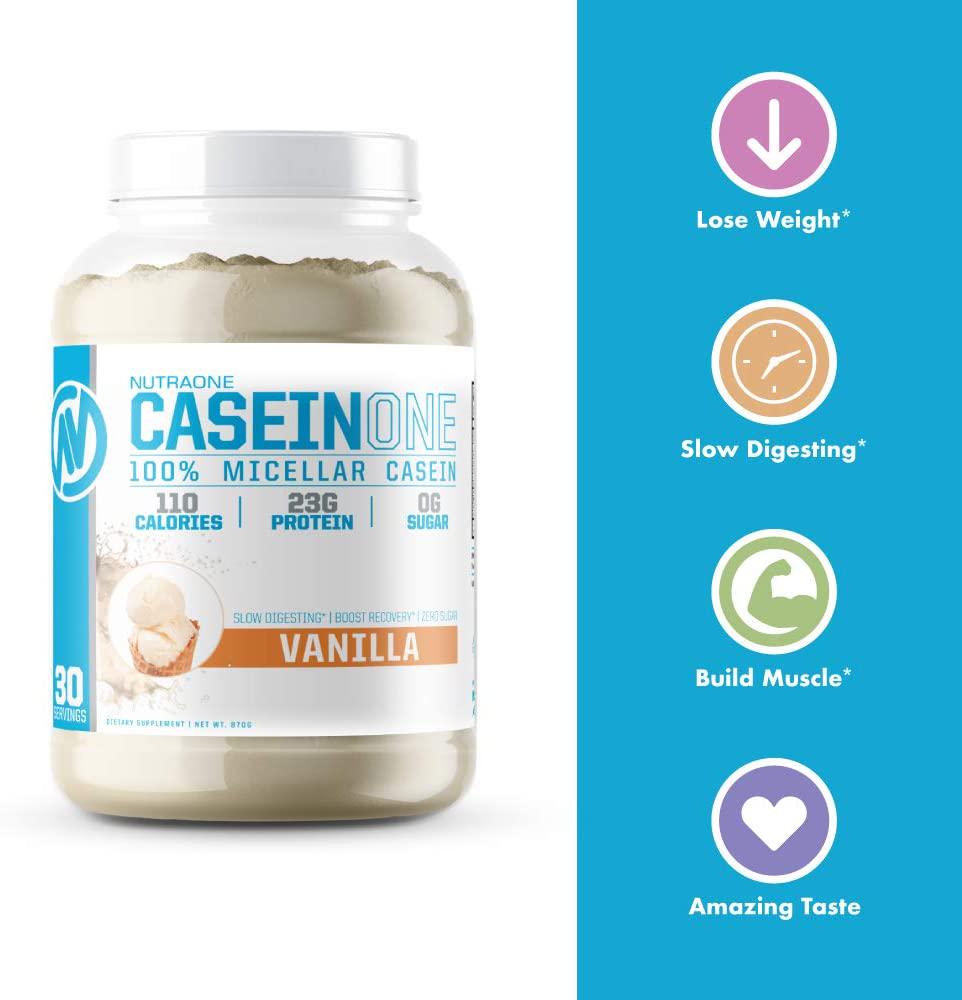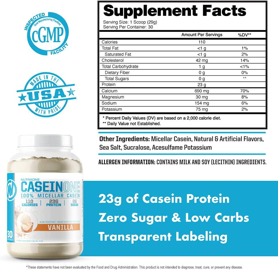 CaseinOne Casein Protein Powder by NutraOne No Sugar 100% Casein Protein Powder (Vanilla 1.91 lbs.)