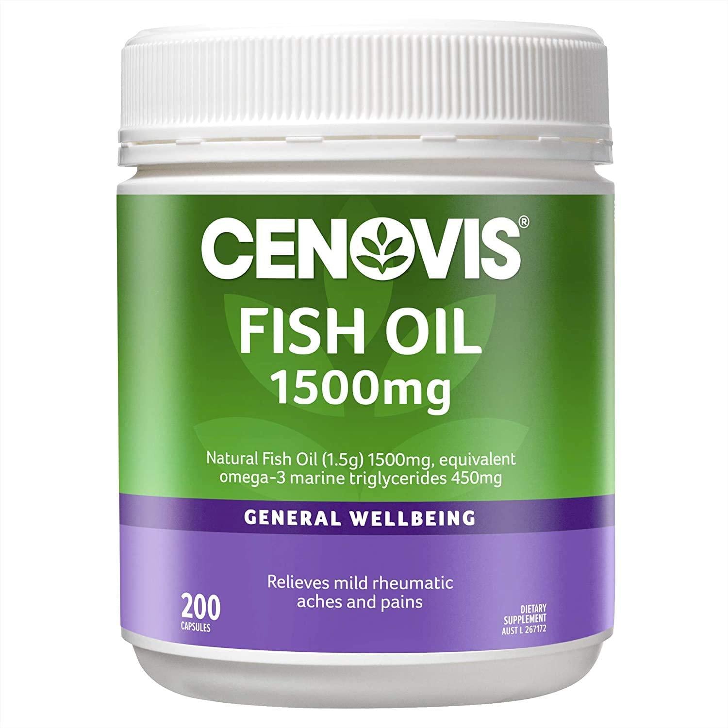 Maintains general health and wellbeing Cenovis Fish Oil 1500mg contains no added: Gluten, lactose, sugar, artificial colours, , artificial sweeteners, or dairy products.Contains fish/fish products and sulfites. Warning: large capsule size.