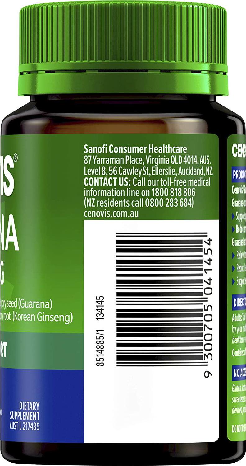 Cenovis Guarana + Ginseng Contains The ian Herb Guarana Combined With Korean Ginseng. Korean Ginseng:Supports Physical Endurance And Stamina , Reduces Mental Fatigue, Guarana Has Traditionally Been Used In Western Herbal Medicine To:Relieve Tiredness, Reduce Headache Symptoms, Support Nervous System, Cenovis Guarana + Ginseng Contains No Added: Gluten, Lactose, Artificial Colours, Artificial Flavours, Artificial Sweeteners, Artificial Preservatives, Dairy Products, Or Animal Derived Products.