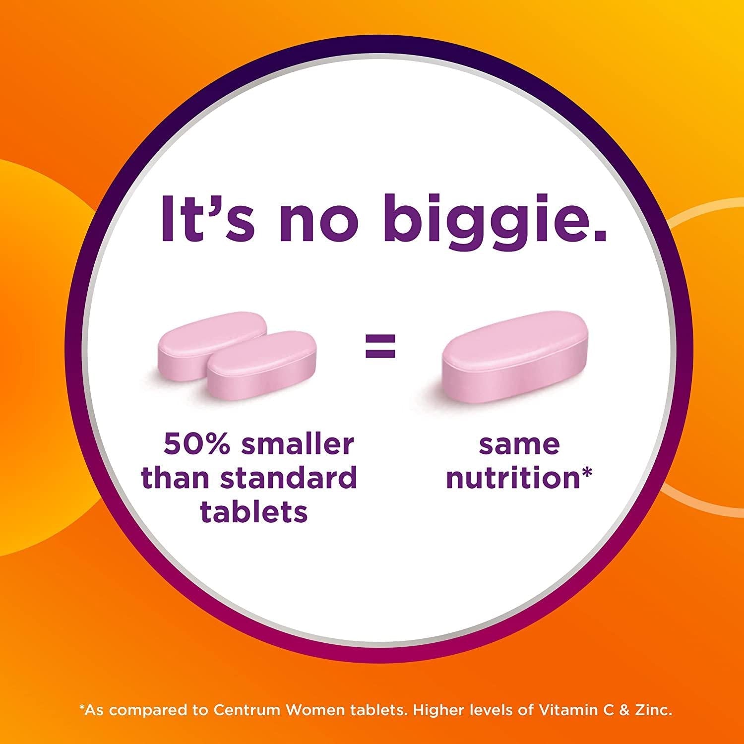 - Easy-to-swallow mini immune support supplement tablets are smaller than regular Centrum tablets