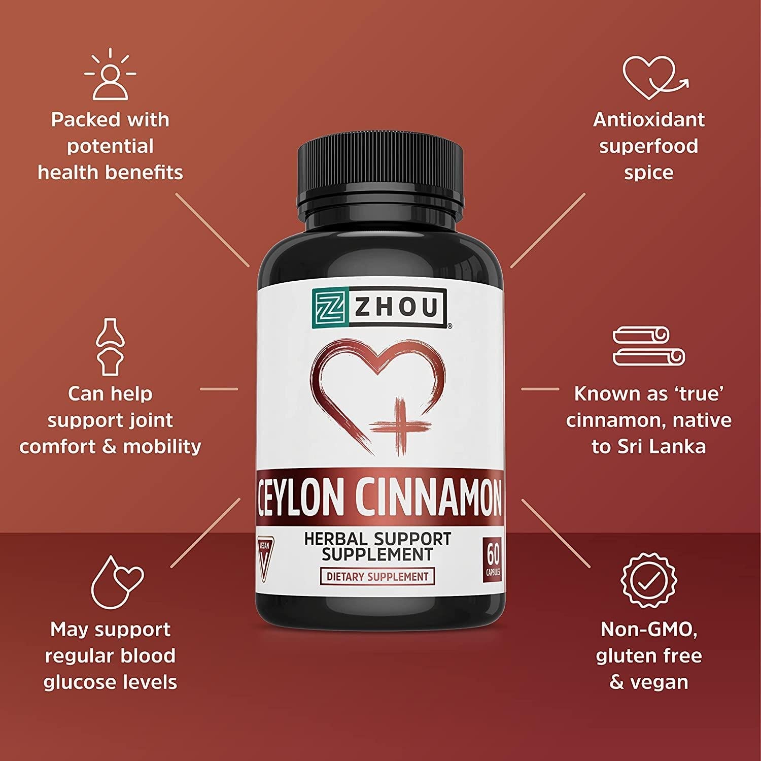 - HEALTHY BLOOD SUGAR - Ceylon Cinnamon is a powerful anti-oxidant that may be helpful in supporting healthy blood glucose levels, heart health, and healthy joints. These are just a few of the MANY impressive potential health benefits of one of the most beloved spices on the planet.