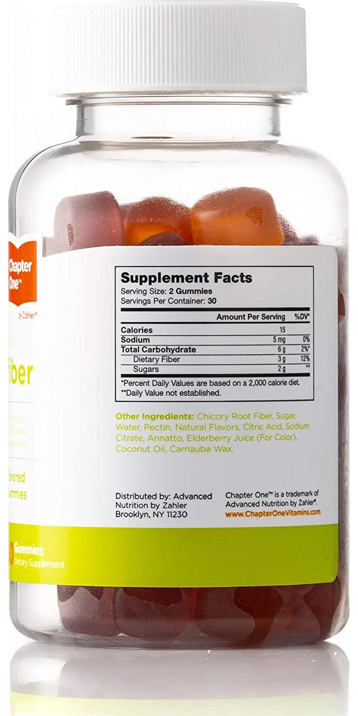 Chapter One Fiber Gummies, with Natural Chicory Root Soluble Fiber, Kosher, 60 Flavored Gummies