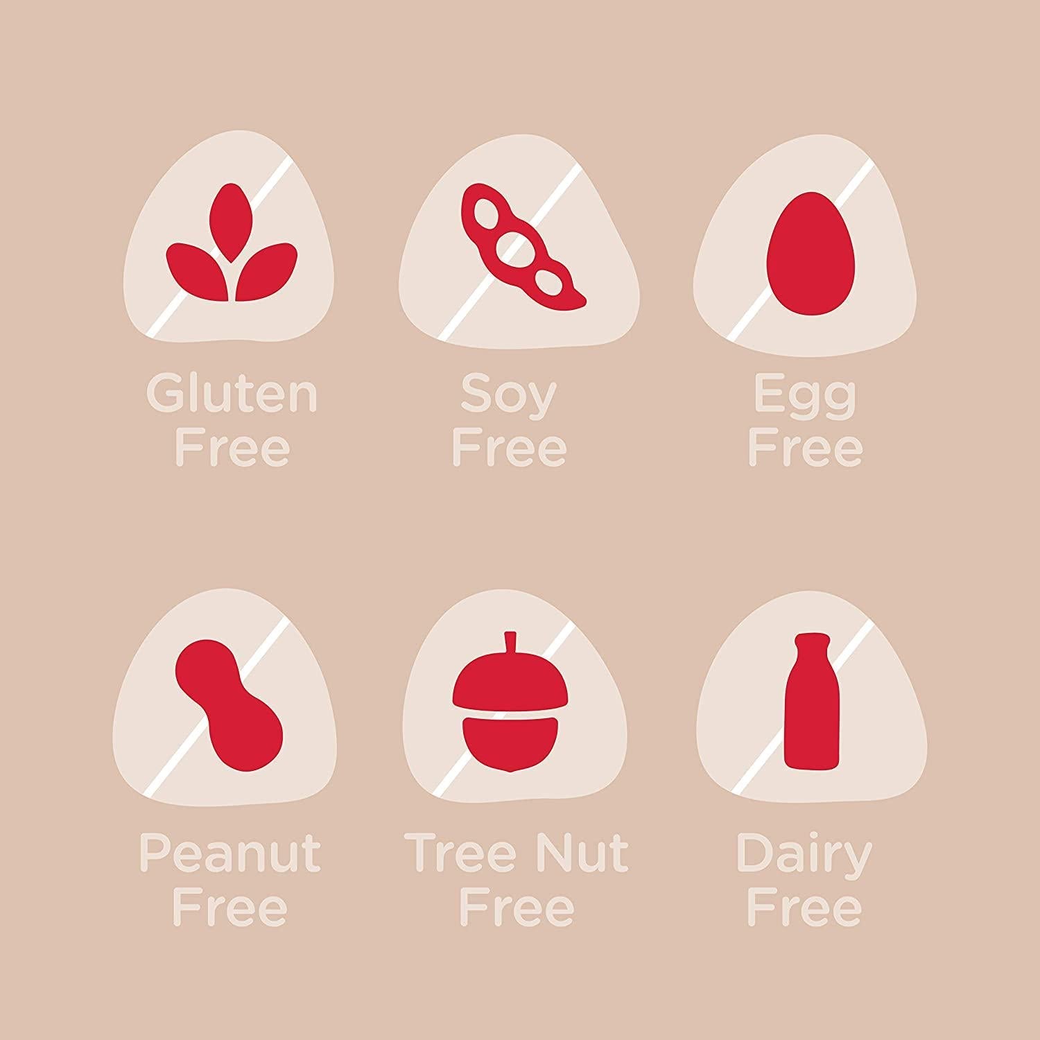 - FREE OF: Peanuts, Tree Nuts, Dairy, Gluten, Soy and Eggs