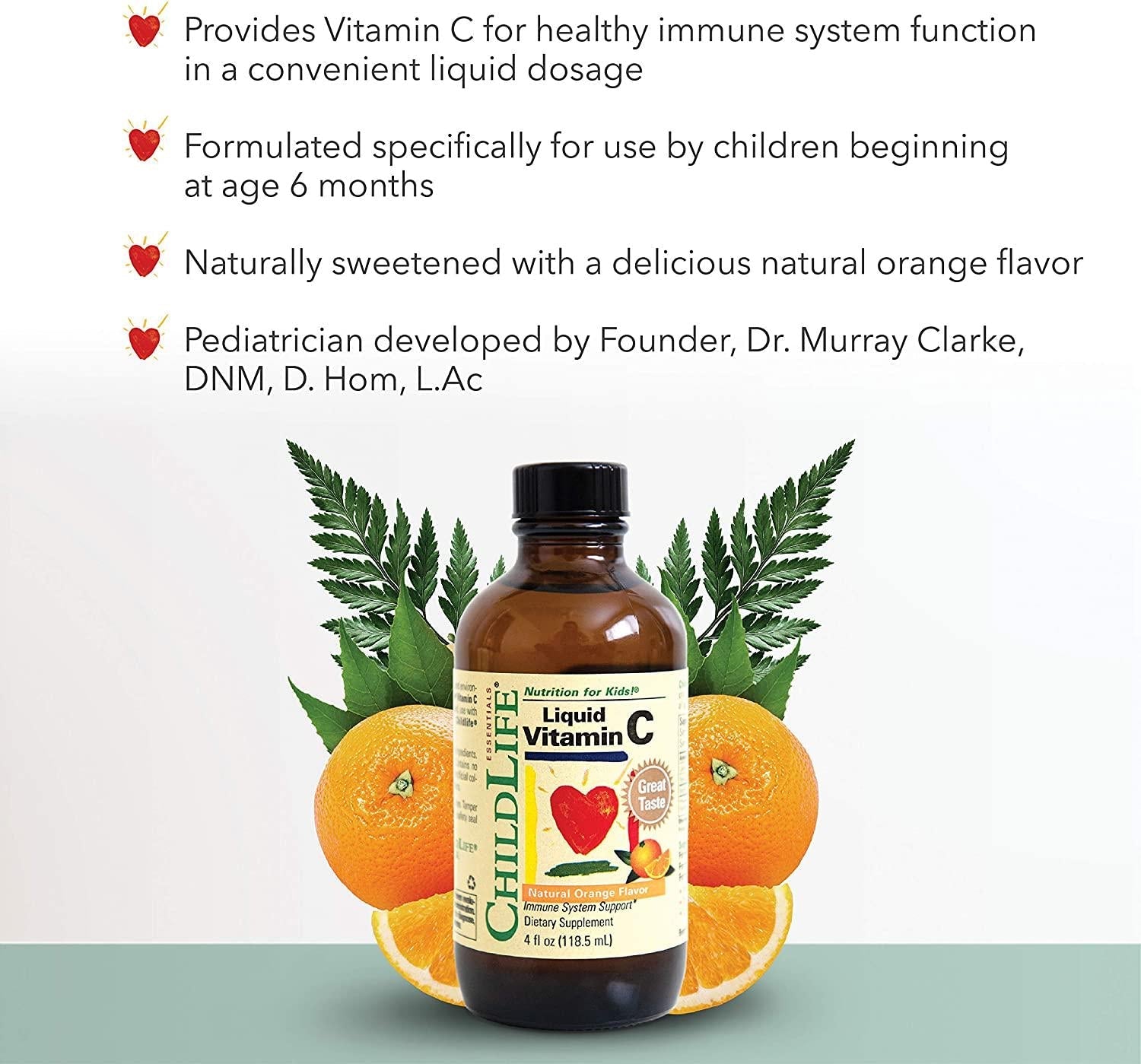 Child Life Liquid Vitamin C, Orange Flavor, Glass Bottle, 4-Ounce (Pack of 3)