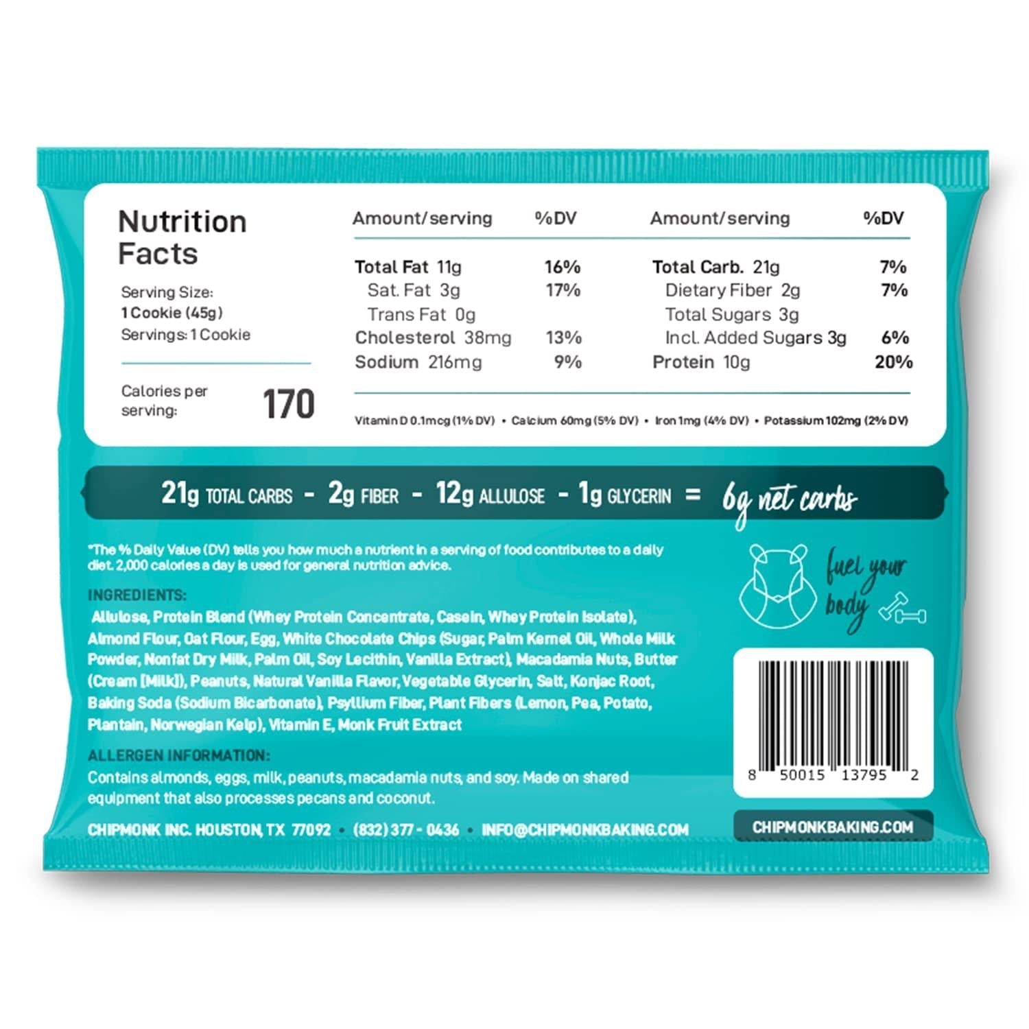 - TASTY HIGH PROTEIN COOKIES: Introducing ChipMonk Baking's soft-baked high protein cookies, made in collaboration with ChipMonk Baking. Offering you a healthy snack made with wholesome ingredients for a sweet treat or complete meal replacement. Featuring real ingredients nuts, chocolate chips, eggs, and peanut butter and sweetened with monk fruit and allulose. These protein cookies contain 10 grams of protein and provide balanced macronutrients and sustainable energy for a fit lifestyle