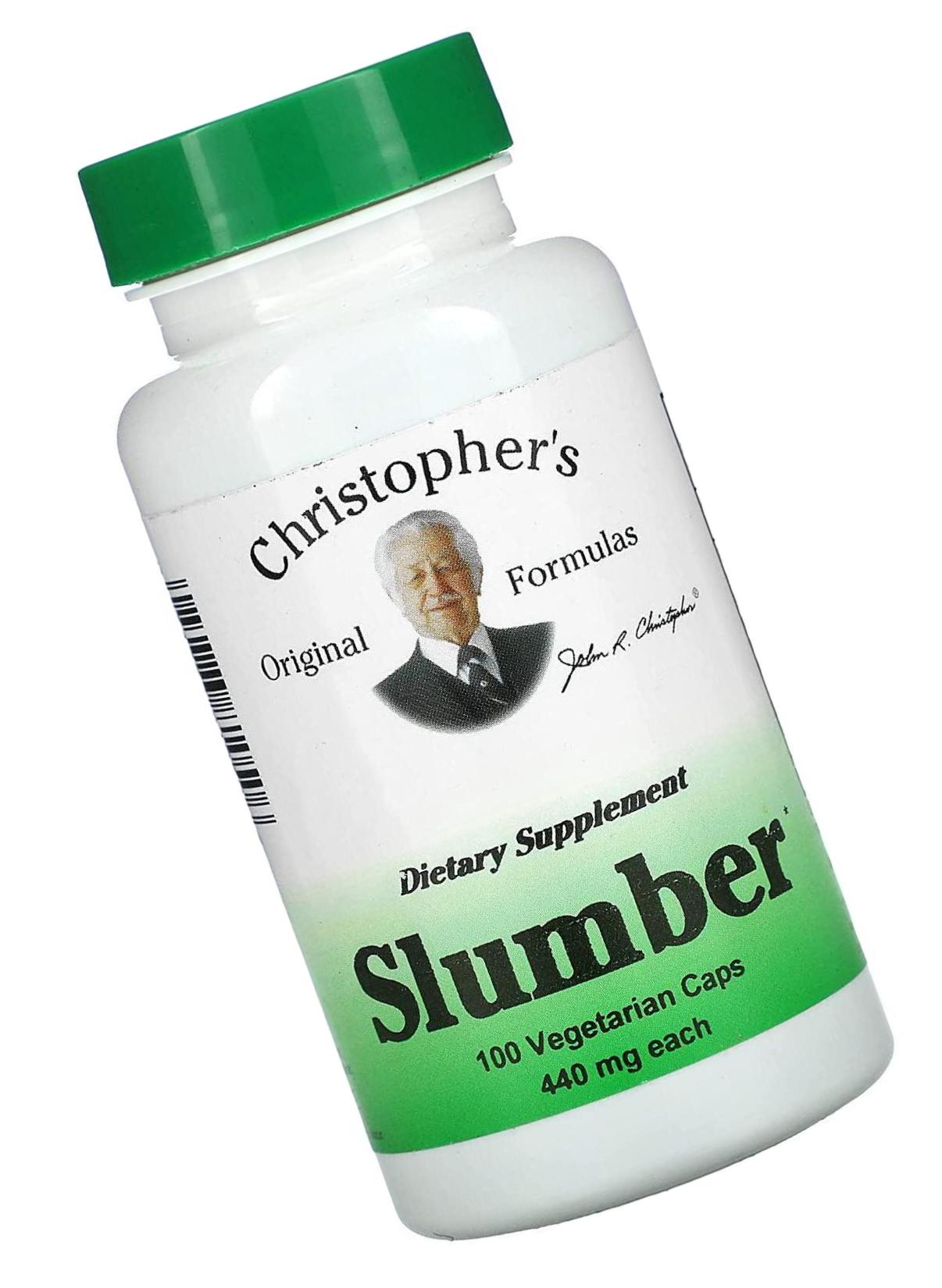 Slumber 50 VegCapProduct DescriptionA synergistic blend of time tested herbs for nervous system function.All to often we try squeezing one more activity into an already overcrowded day. We may feel we can stretch our days by stealing from our nights, but at what price Getting adequate sleep is essential for our quality of life, productivity, safety & health.Dr. Christopher's Slumber provides calming properties & promotes restful sleep.