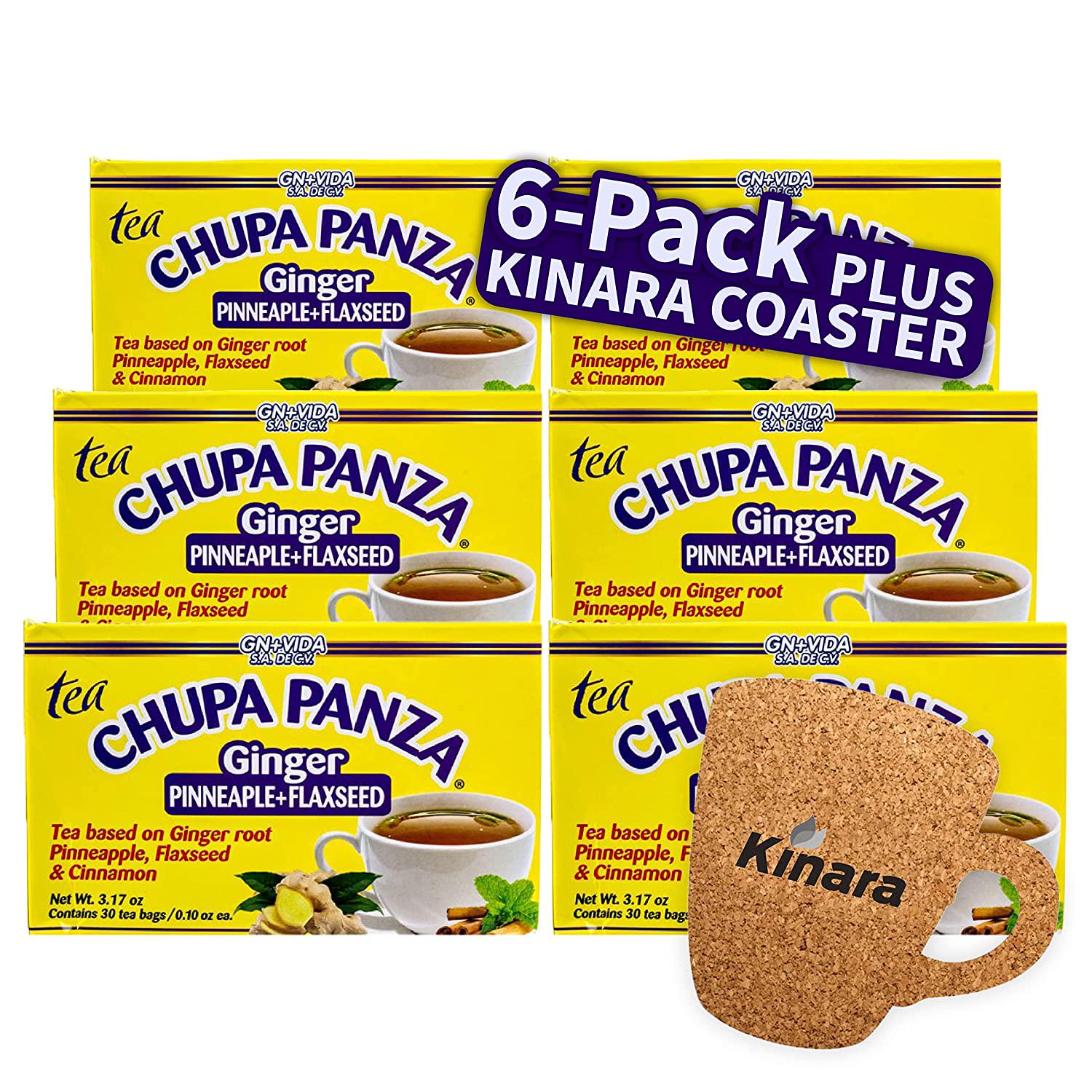 CHUPA PANZA Tea Detox and Herbal Weight Loss Slimming with Ginger Root, Pineapple Cinnamon to Control Weight, Lose Belly Fat Clear Skin - 6-Pack (30/Box 180 total) Kinara Coaster 3.17 Ounce(Pack 6)