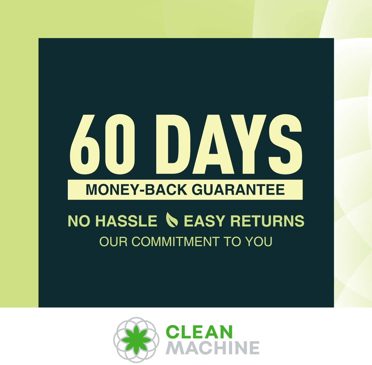 • 100% MONEYBACK GUARANTEE: If for whatever reason you are not 100% thrilled with any of our Clean Machine products, I insist that you ask for your money back and we'll gladly give you a full refund.