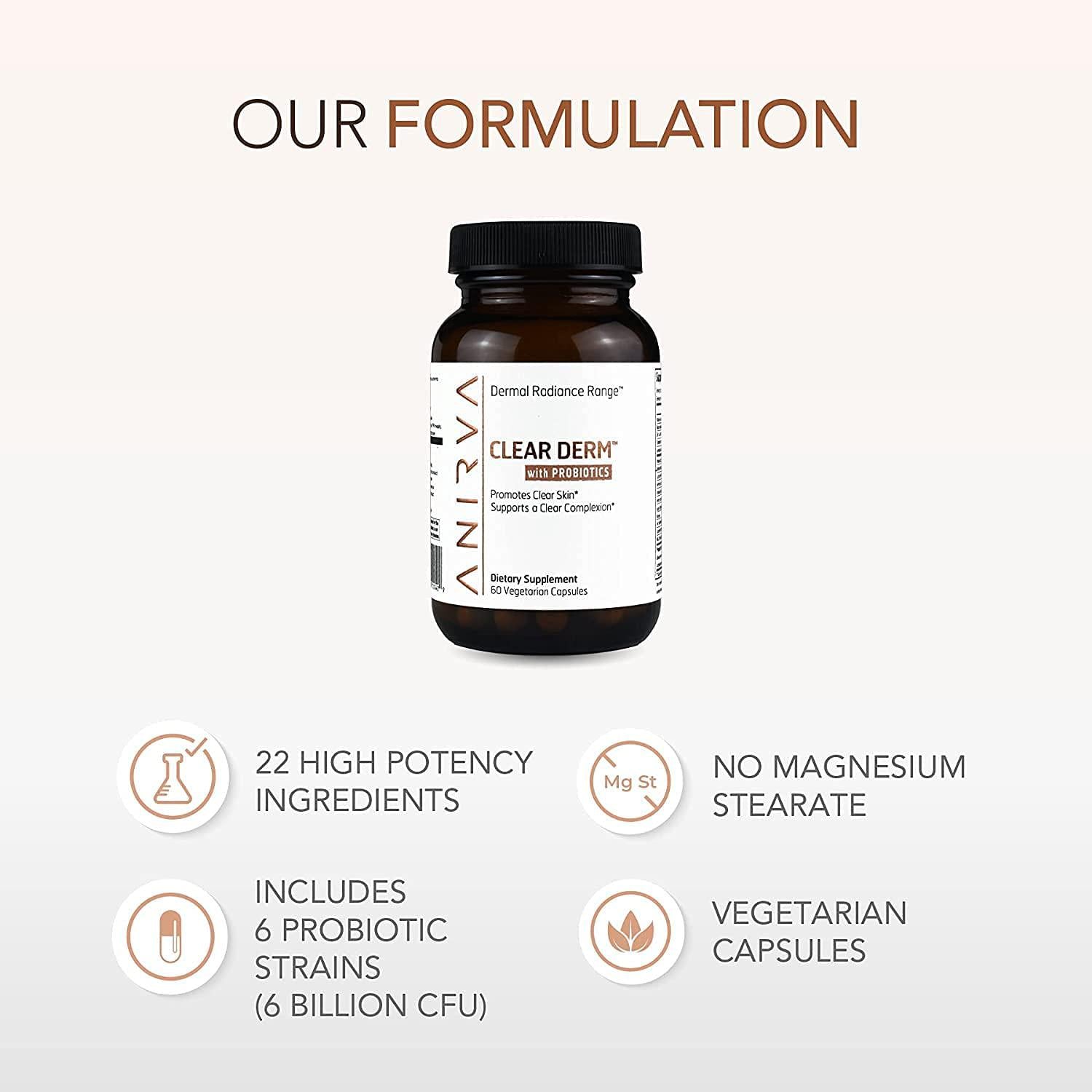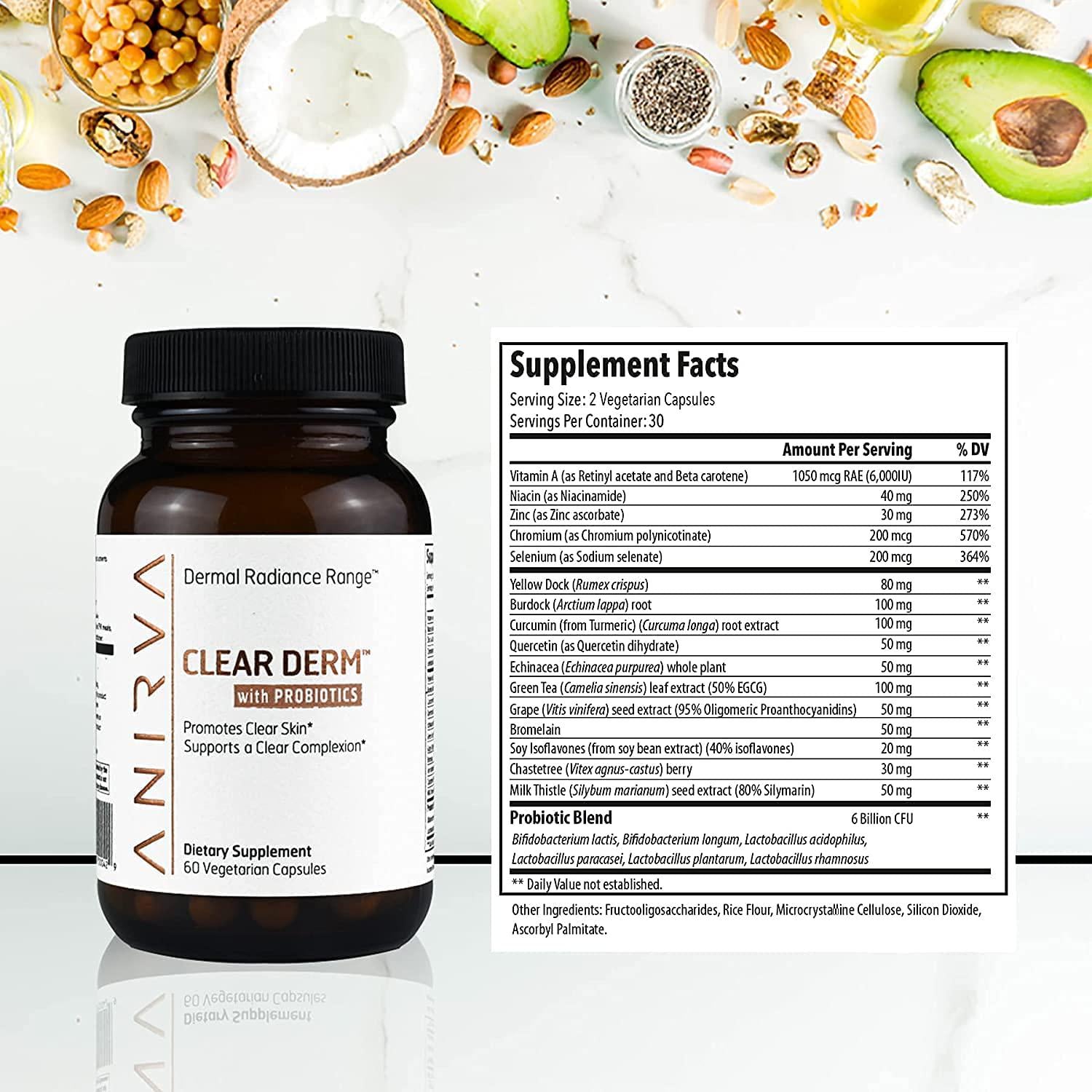 Clear Skin Supplement with Zinc for Adults, Formulated To Battle Hormonal Acne, Zinc Pills for Acne, Rosacea Skin Supplement, Zinc Supplements for Adult Acne - Anirva ClearDerm