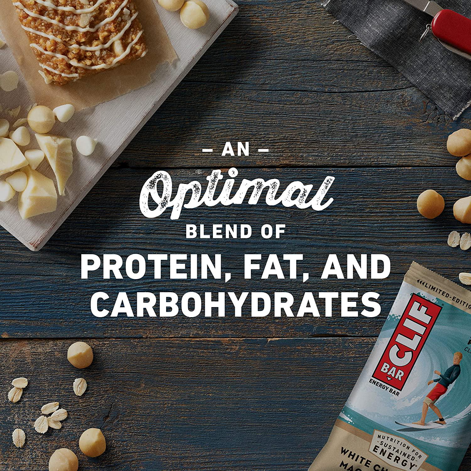 - NUTRITION FOR SUSTAINED ENERGY: CLIF BAR is The Ultimate Energy Bar, purposefully crafted with an ideal mix of protein, fat, and carbohydrates to sustain active bodies before and during long-lasting, moderate-intensity activity.