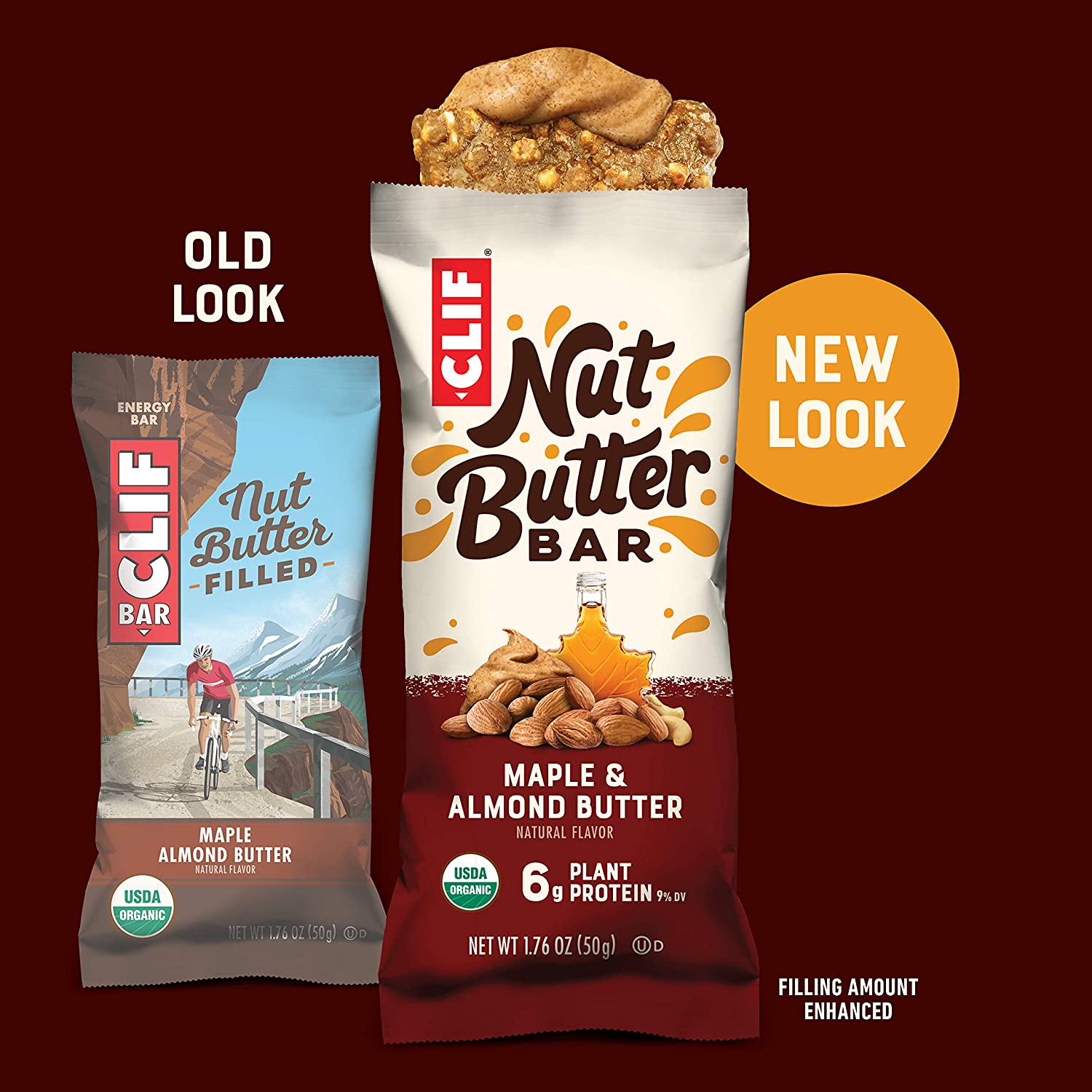Clif Nut Butter Bar - Organic Snack Bars - Maple Almond Butter - Organic - Plant Protein - Non-GMO (1.76 Ounce Protein Snack Bars, 12 Count)
