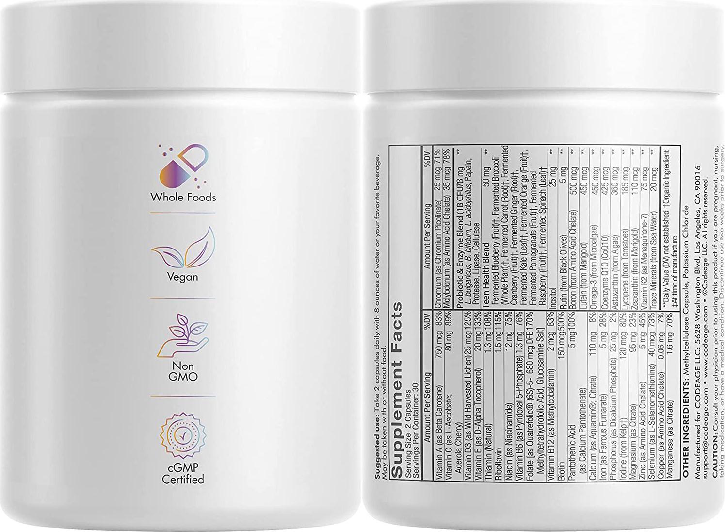- Fruits, veggies & whole foods: Codeage multivitamins formula for teens also features fermented and organic fruits and veggies including blueberry fruit, broccoli, carrot, cranberry fruit, ginger, kale, orange fruit, pomegranate fruit, raspberry fruit, and spinach all at once. These healthy fruits and veggies are a source of whole foods vitamins.