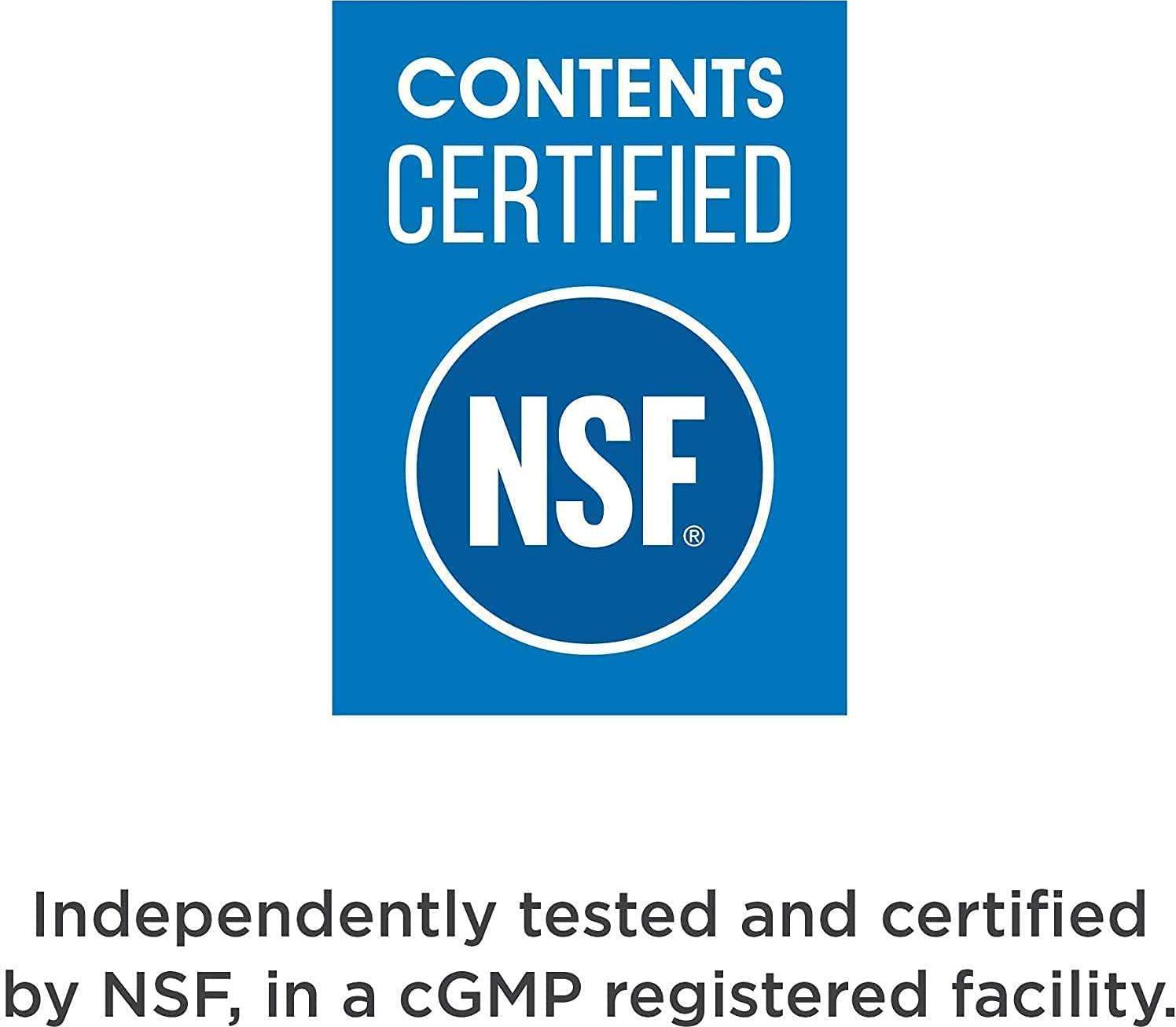 - Independently tested and certified by NSF International. Dye-free, Gluten-free,