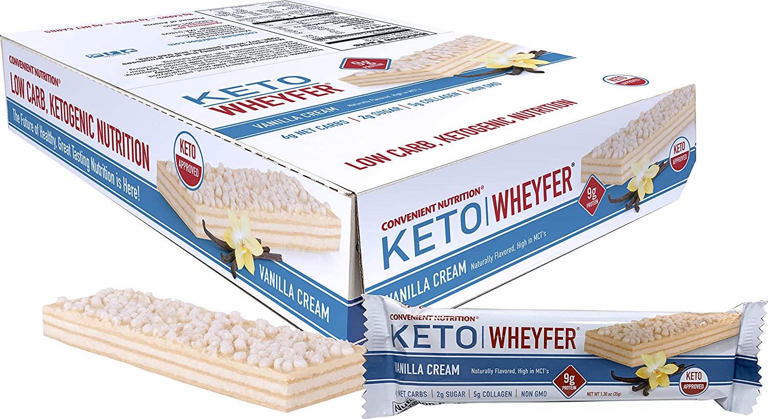 Convenient Nutrition Keto WheyFer Protein Snack Bars - Low Carb, Low Sugar, Ketogenic - Vanilla Cream 10 Bars