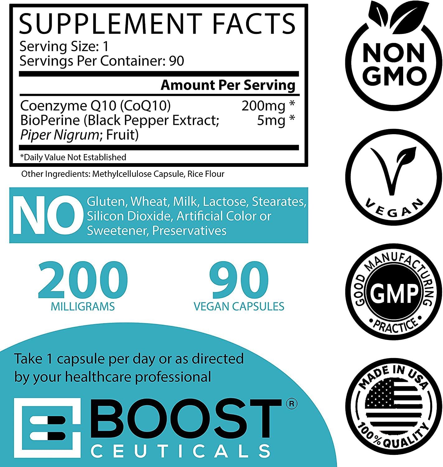 CoQ10 with Bioperine - High Absorption CoQ10 200 mg 90 Capsules - Vegan - Non-GMO - Gluten Free - No Additives Coenzyme Q10 - Superior Heart Health Co Q 10 Supplement by BoostCeuticals
