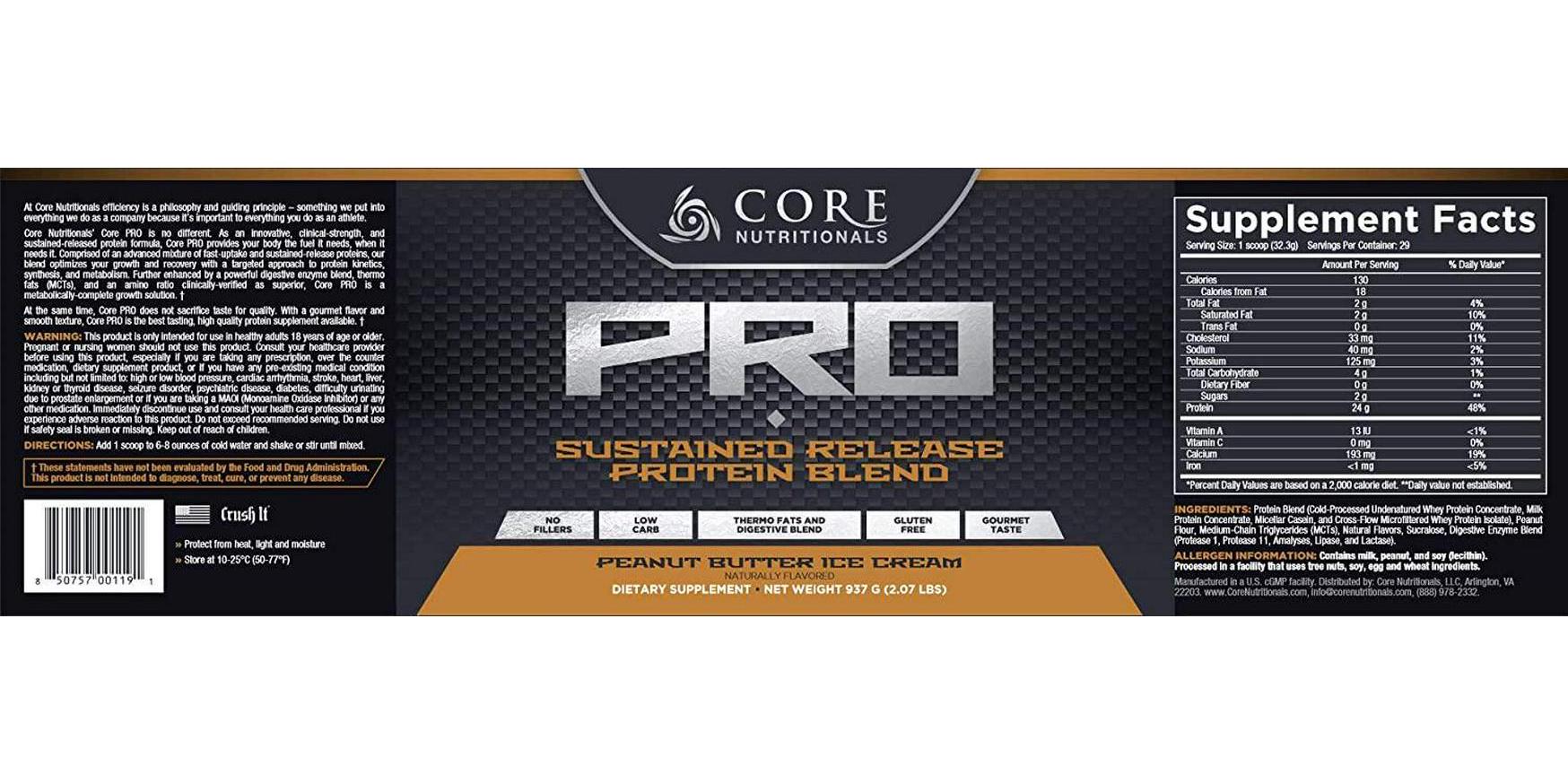 29 servings, core nutritionals core pro, endurance enhancement, hydration, peanut butter ice cream, usa, workout fuel
