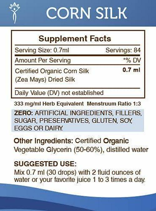 Corn Silk Tincture Alcohol-Free Extract, Organic Corn Silk (Zea Mays) Dried Silk (2 FL OZ)