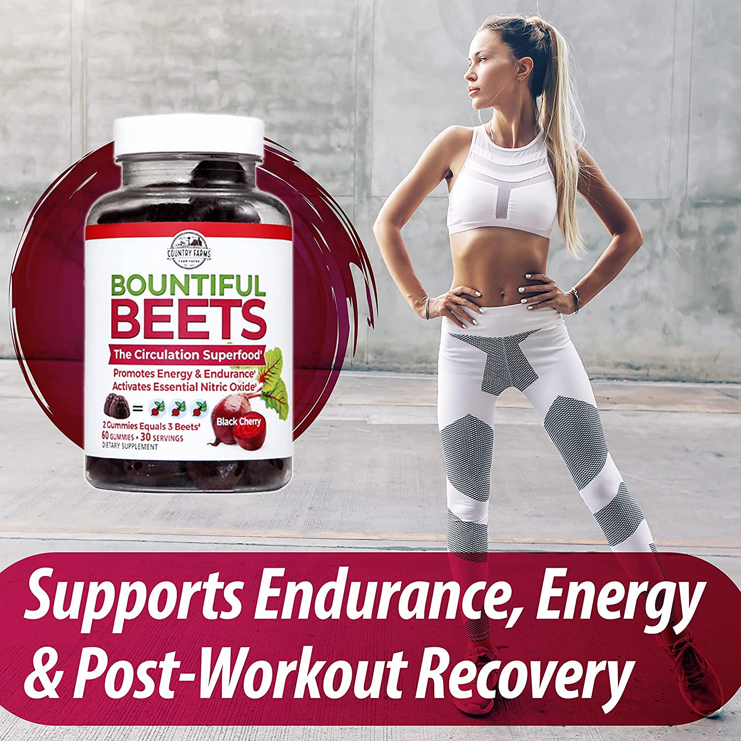 Country Farms Bountiful Beets Gummies, Circulation Superfood, Promotes Energy and Endurance, 30 Servings, White, 60 Count