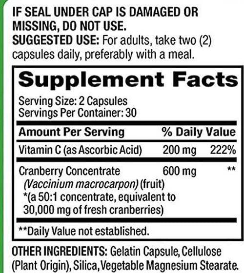 Description Finest Nutrition Triple Strength Cranberry May Support urinary tract and bladder health 30,000 mg equivalent per serving urinary tract health 60 Capsules Dietary Supplement Made in USA