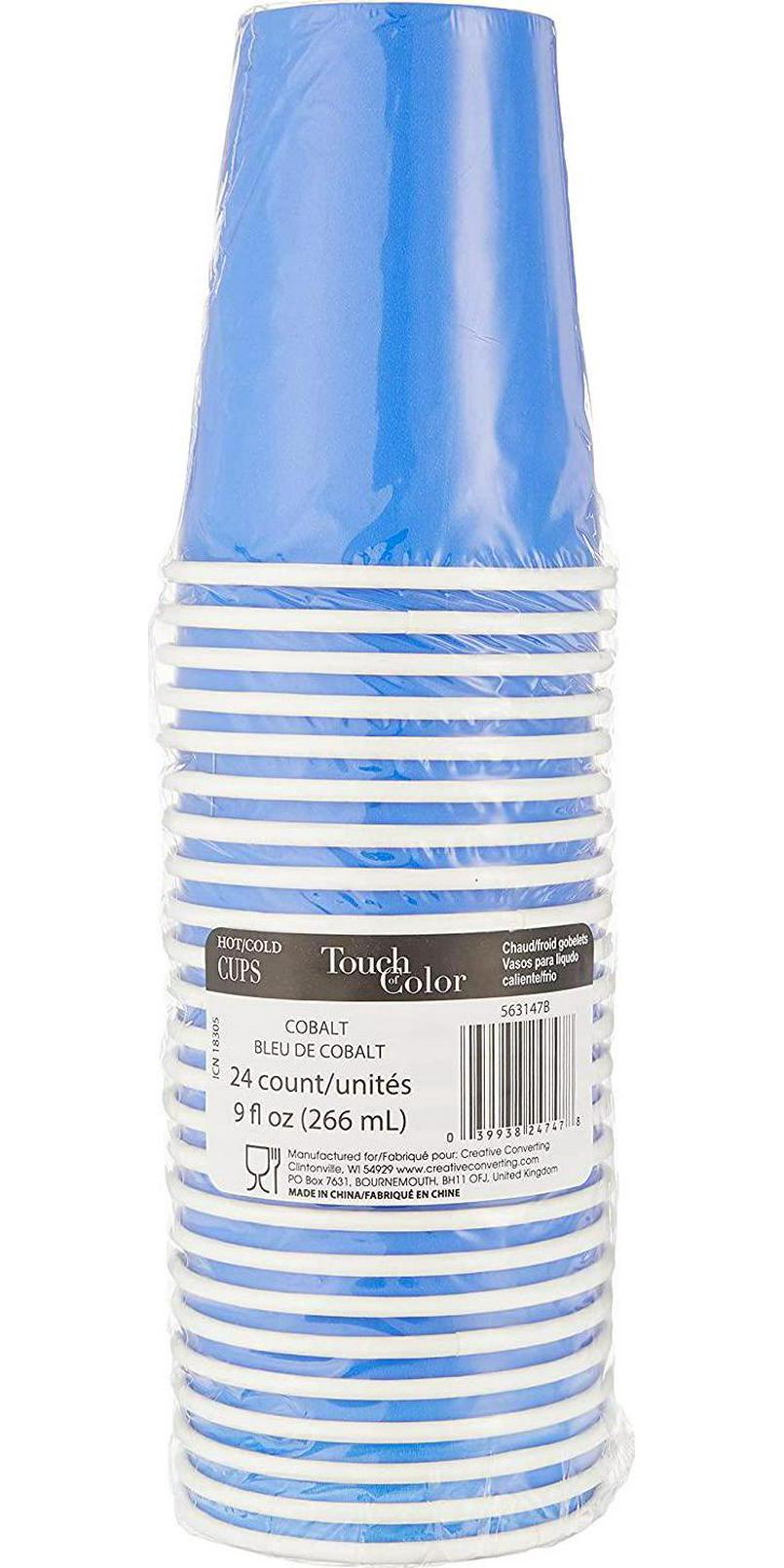 24-pack, 9 oz cups, cobalt, creative converting, hot/cold cups, paper cups, usa