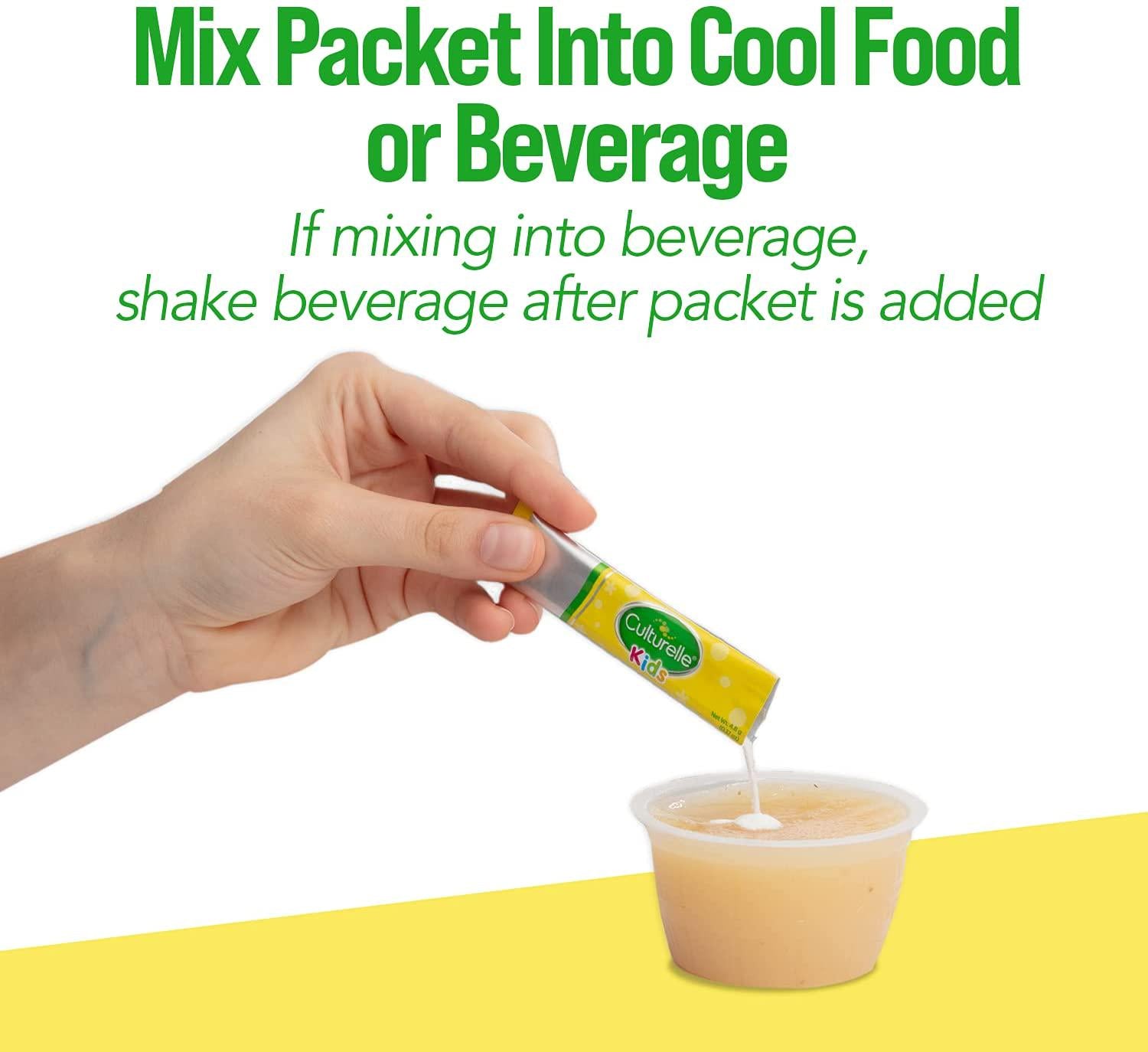 - Naturally Sourced ingredients: Contains a unique blend of naturally sourced ingredients developed just for kids' Digestive systems. Flavorless packets; mix into cool food or beverage to serve. Great mixed with applesauce or yogurt.