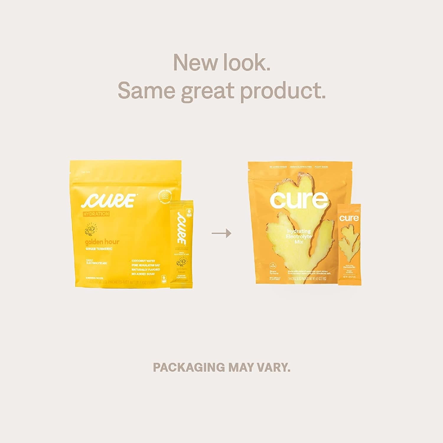 Cure Hydrating Electrolyte Mix | Electrolyte Powder for Dehydration Relief | Made with Coconut Water | No Added Sugar | Vegan | Paleo Friendly | Box of 8 Hydration Packets - Ginger Turmeric Flavor