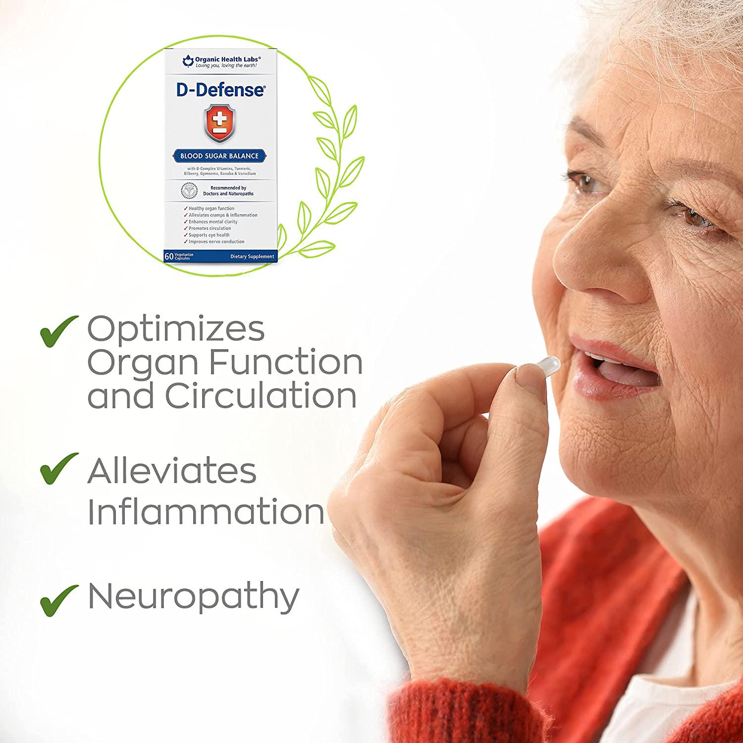 D-Defense contains a proprietary blend of powerful key nutrients to support your body's natural ability to maintain within range blood sugar levels and healthy organ function. D-Defense also promotes circulation to improve nerve conduction, lessen cramping and tingling. Stable blood sugar levels improve mental clarity, vision, mood, energy and overall health. To sustain blood sugar balance throughout the day, you may take D-Defense along with healthy eating habits and exercise.