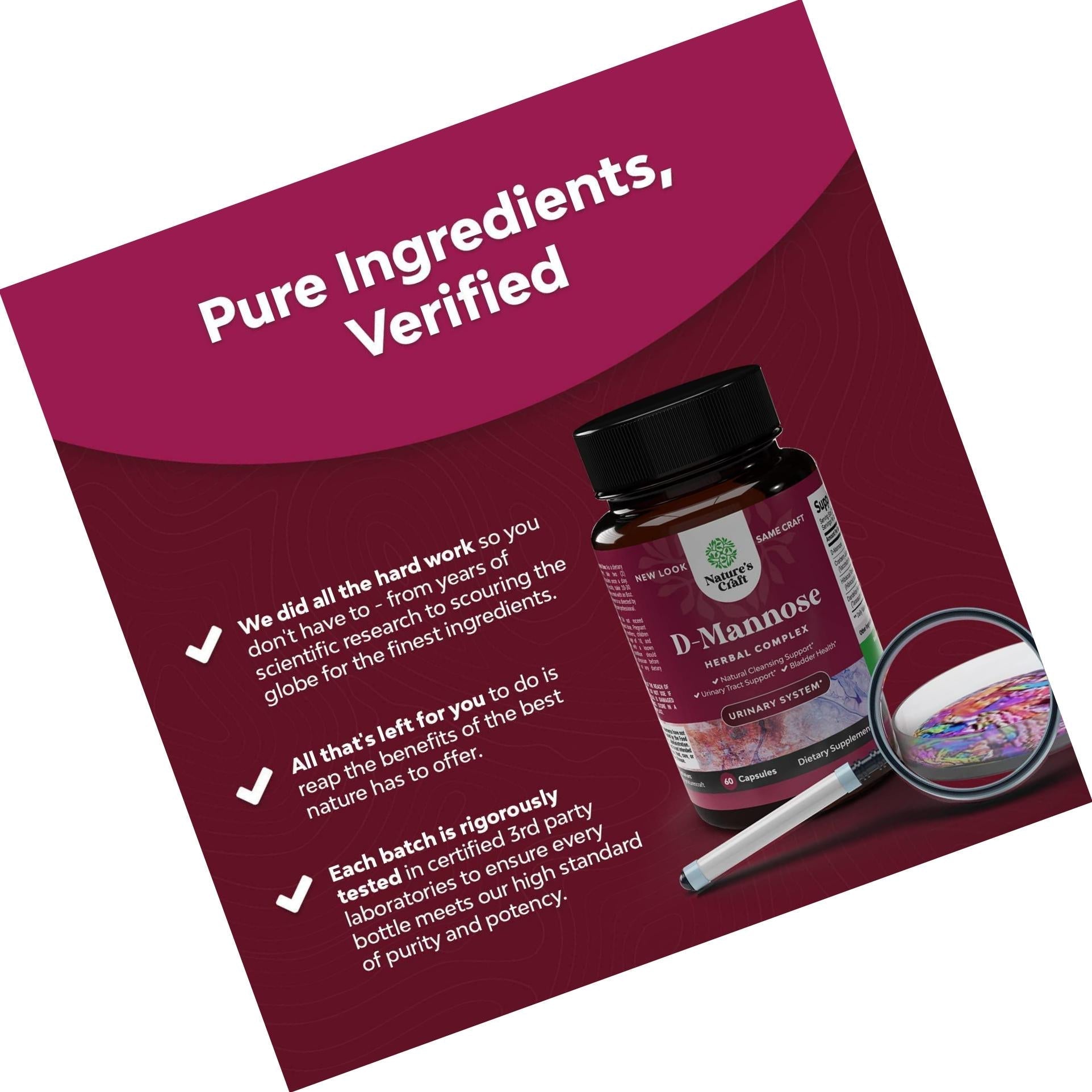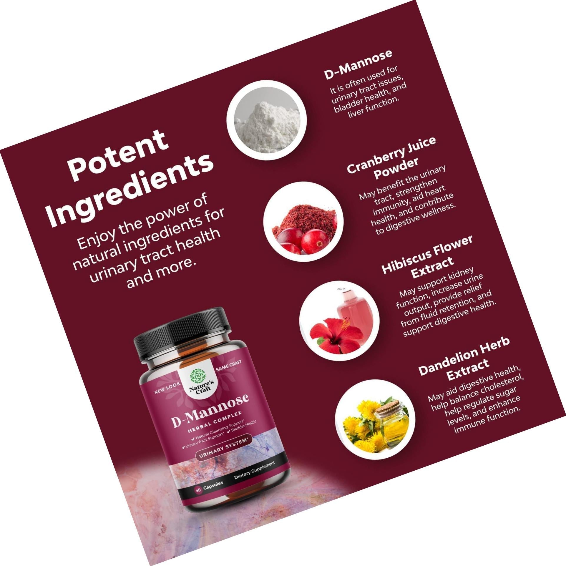 Remember: At Natures Craft, we use only the purest, most potent and high-quality ingredients available in our D-Mannose and Cranberry Urinary Health Supplement. We do this because we want our products to work for you time and again. We want you to be a customer for life!