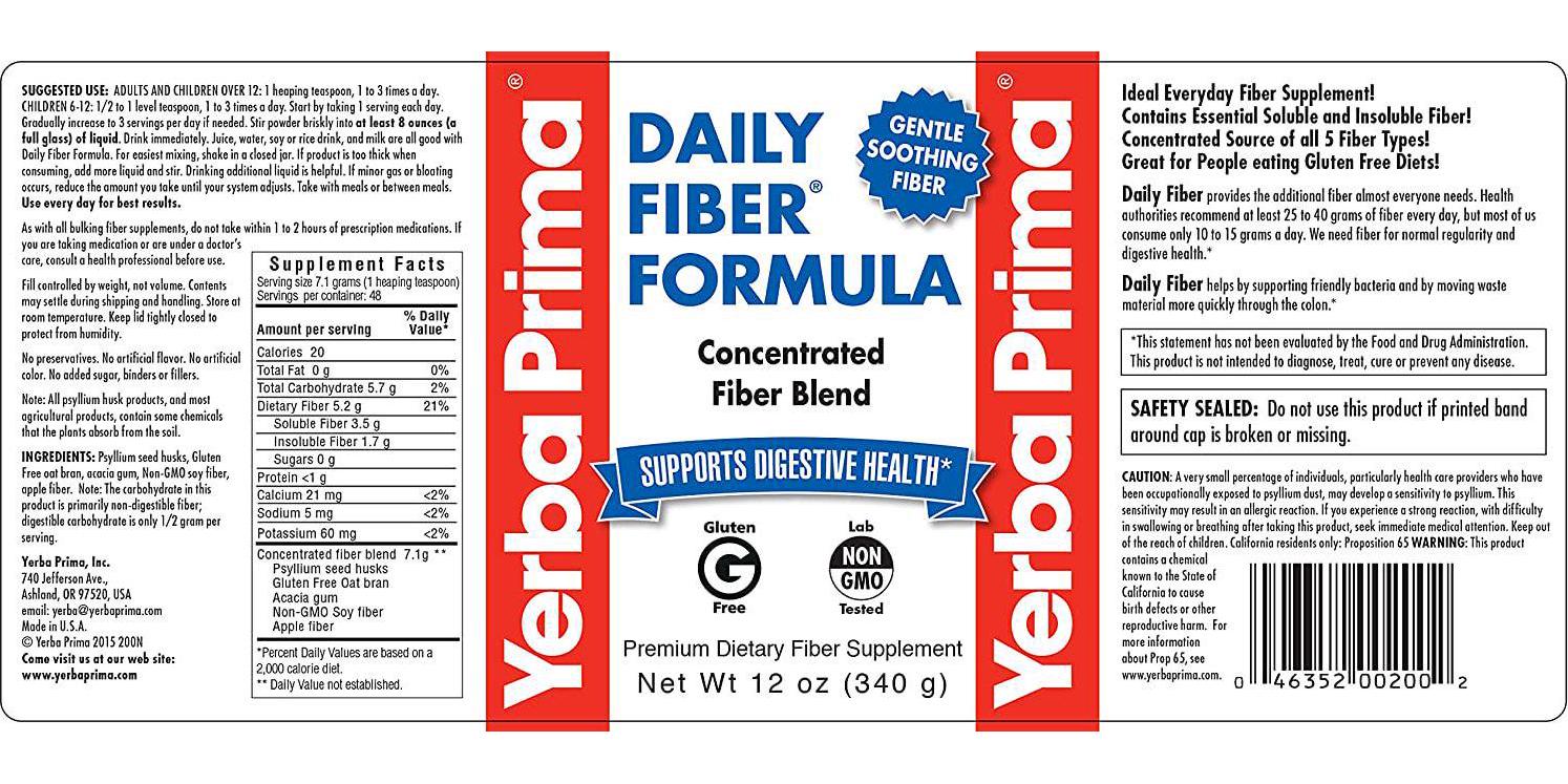 Yerba Prima Daily Fiber Formula Powder - 12 oz (Pack of 3)