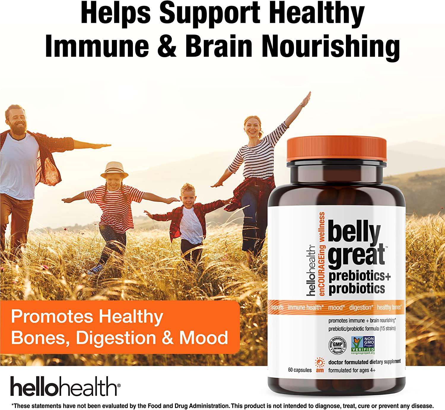 Daily Probiotic for Women, Men + Kids Probiotic –Belly Great Prebiotics and Probiotics for Gut Health, Immune Support, Stress Relief + Vitamin D3, Folate B Vitamins: 15 Strain, Gluten Free -60 Count