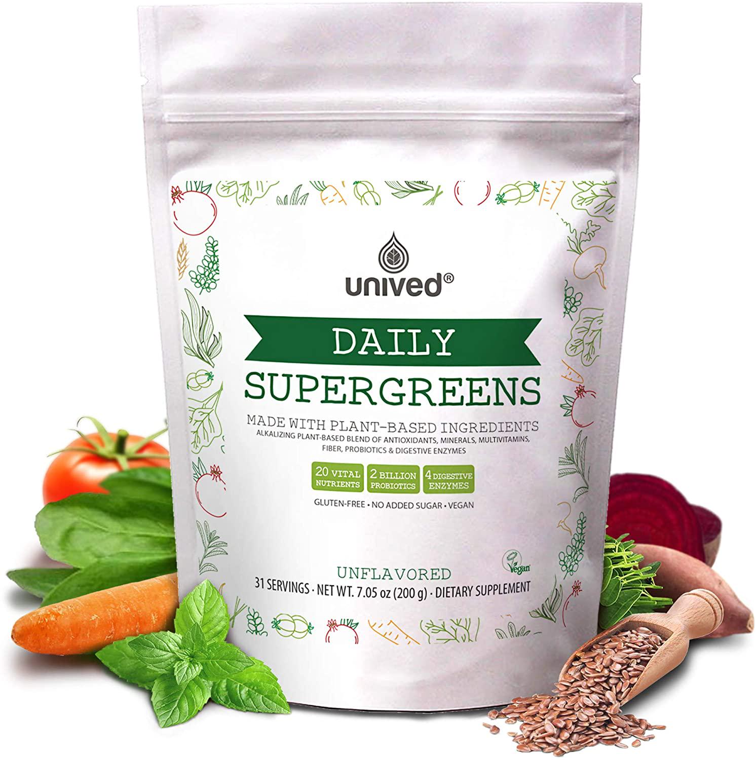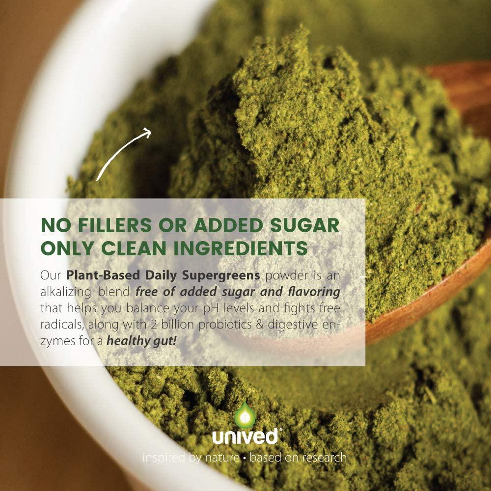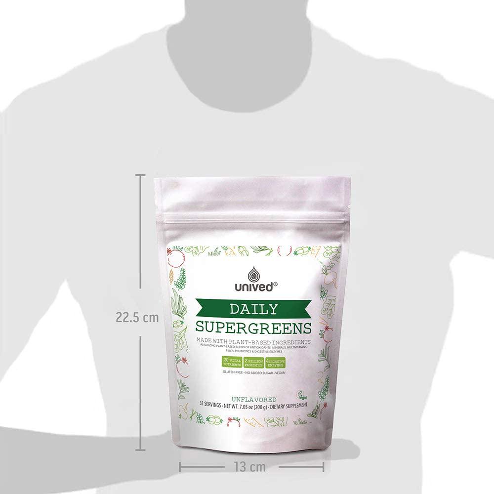 - ORIGINAL DAILY SUPERGREENS: Unived was the first company in India to launch a Daily Supergreens formulation, as a comprehensive blend of various greens, way back in 2017. We have now revised our formulation, to make it the most complete greens product on the market, packed with a powerful alkalising, antioxidant, anti inflammatory, mineral, vitamin and fibre rich blend of plant-based food ingredients.