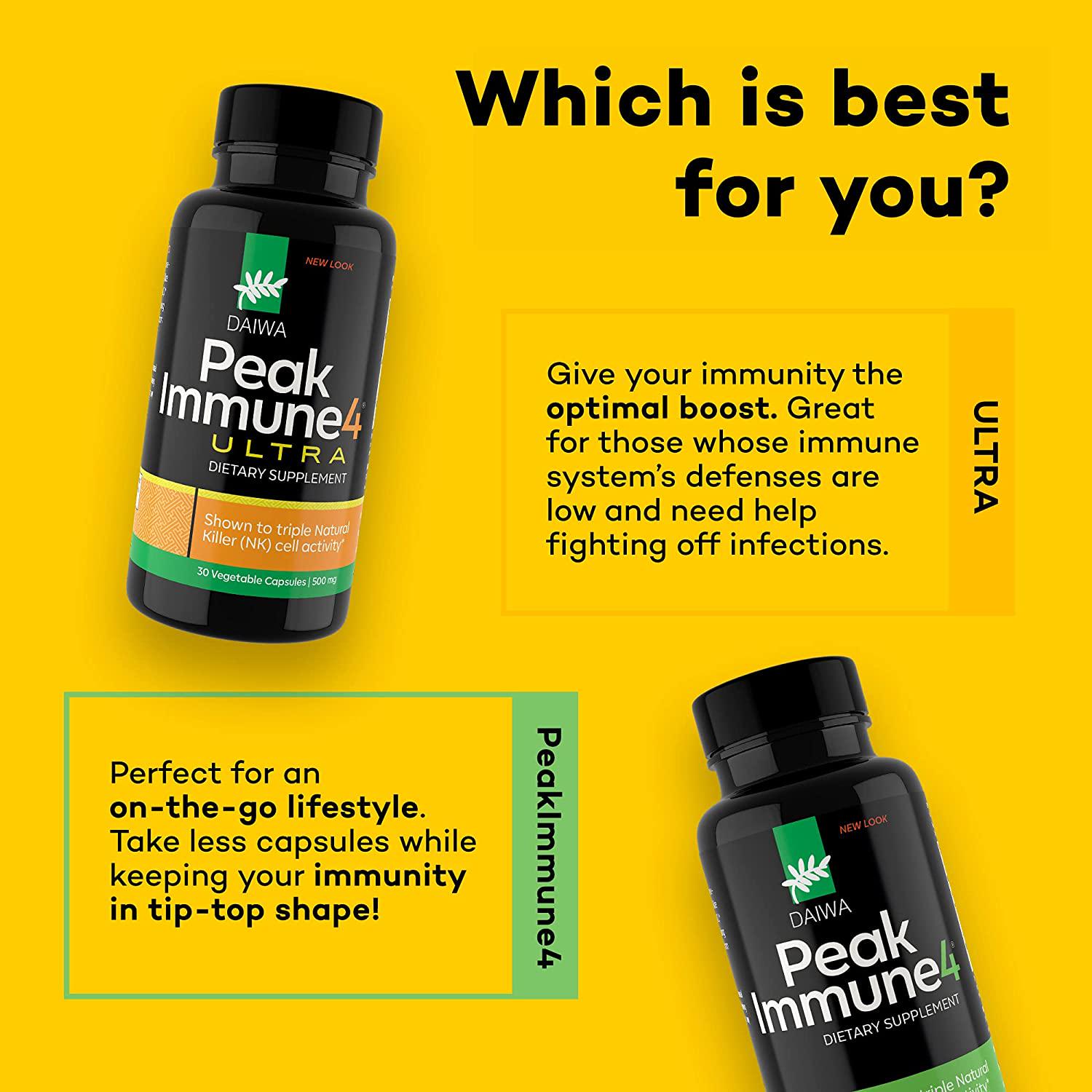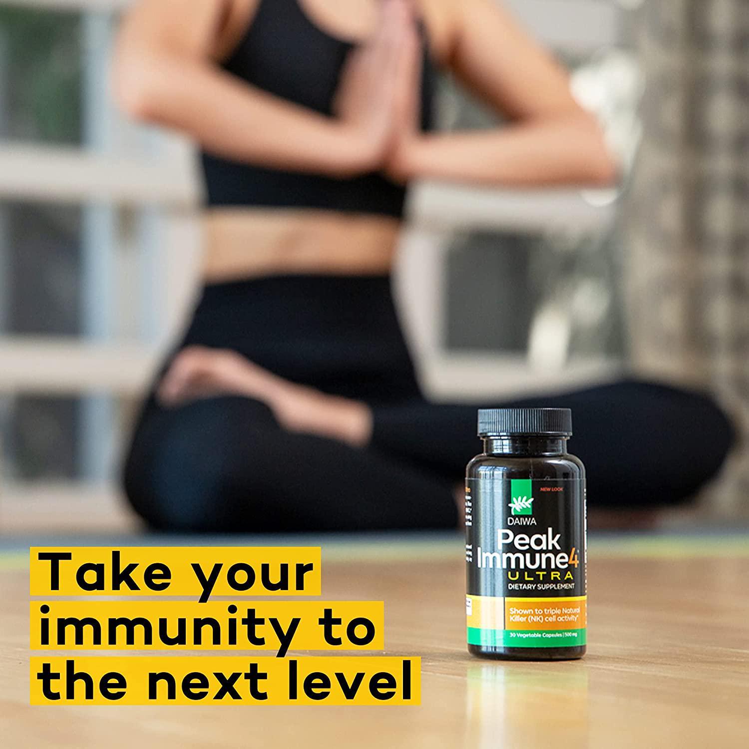 Daiwa Peak Immune 4 - Natural Immune System Booster Supplement 1000mg Dose - 30 Count Increases Killer Cell Activity and Healthy Cytokine Production - Superior Alternative to AHCC